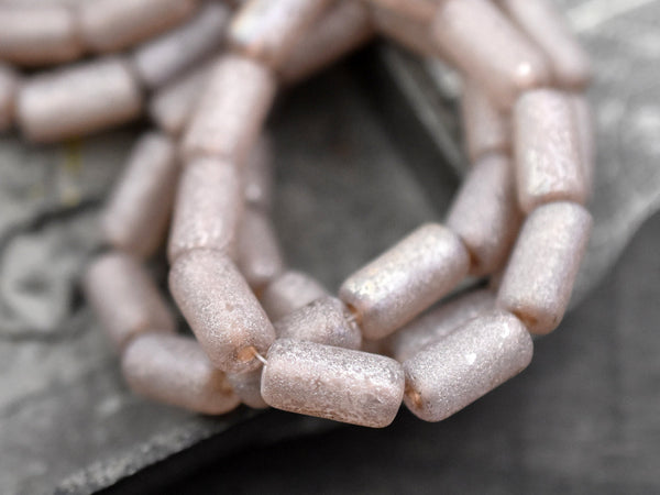 *10* 14x7mm Metallic Beige Washed Etched Crystal Large Hole Tube Beads