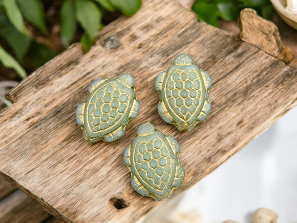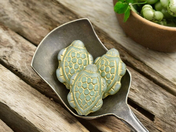 *4* 18x13mm Bronze Washed Matte Celadon Green Turtle Beads
