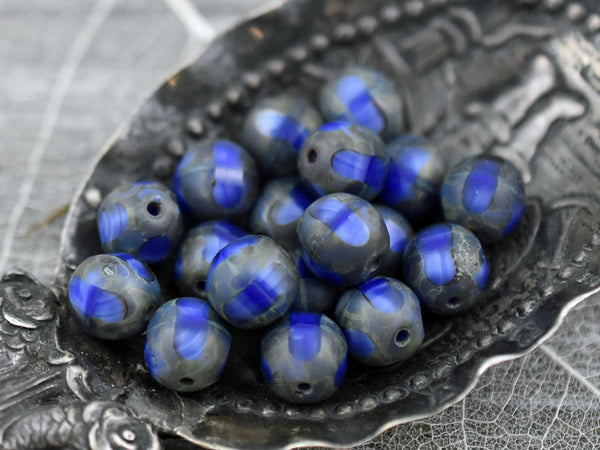 *18* 8mm Lapis Blue Silk Travertine Window Cut Round Beads