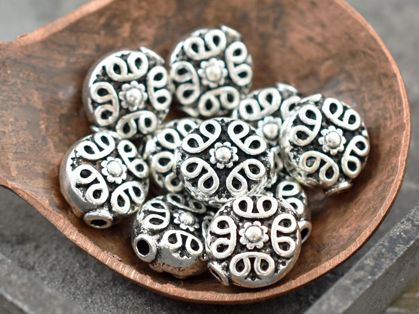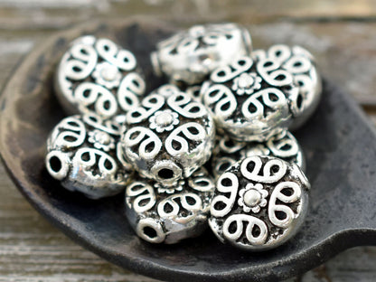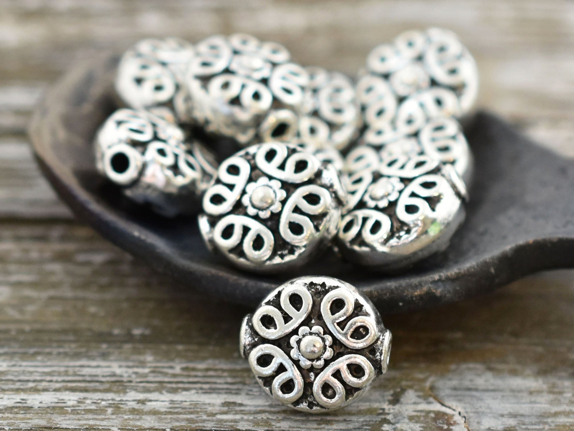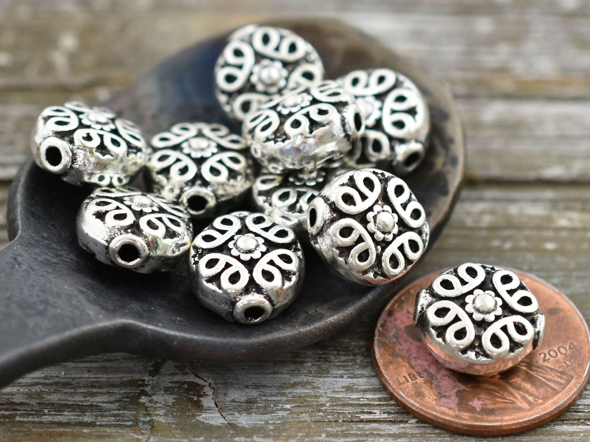 *50* 10mm Antique Silver Ornate Coin Spacer Beads