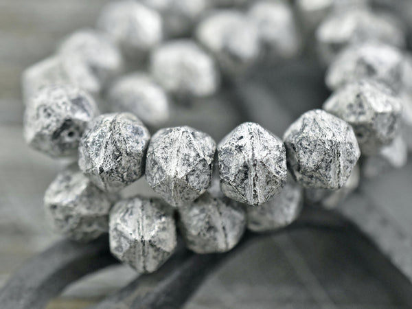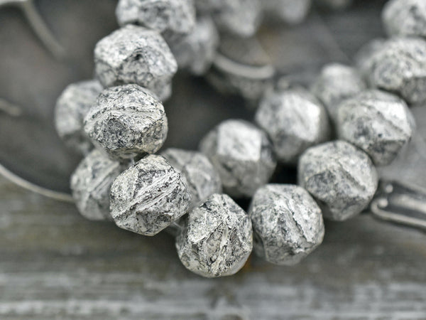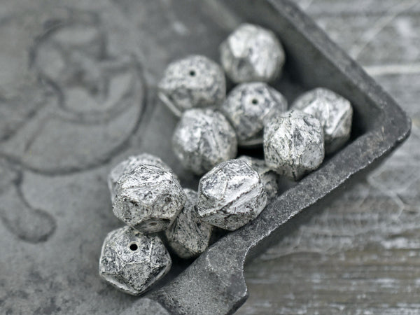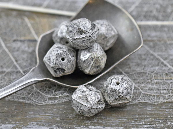 *10* 10mm Antique Silver Washed Jet Black English Cut Round Beads
