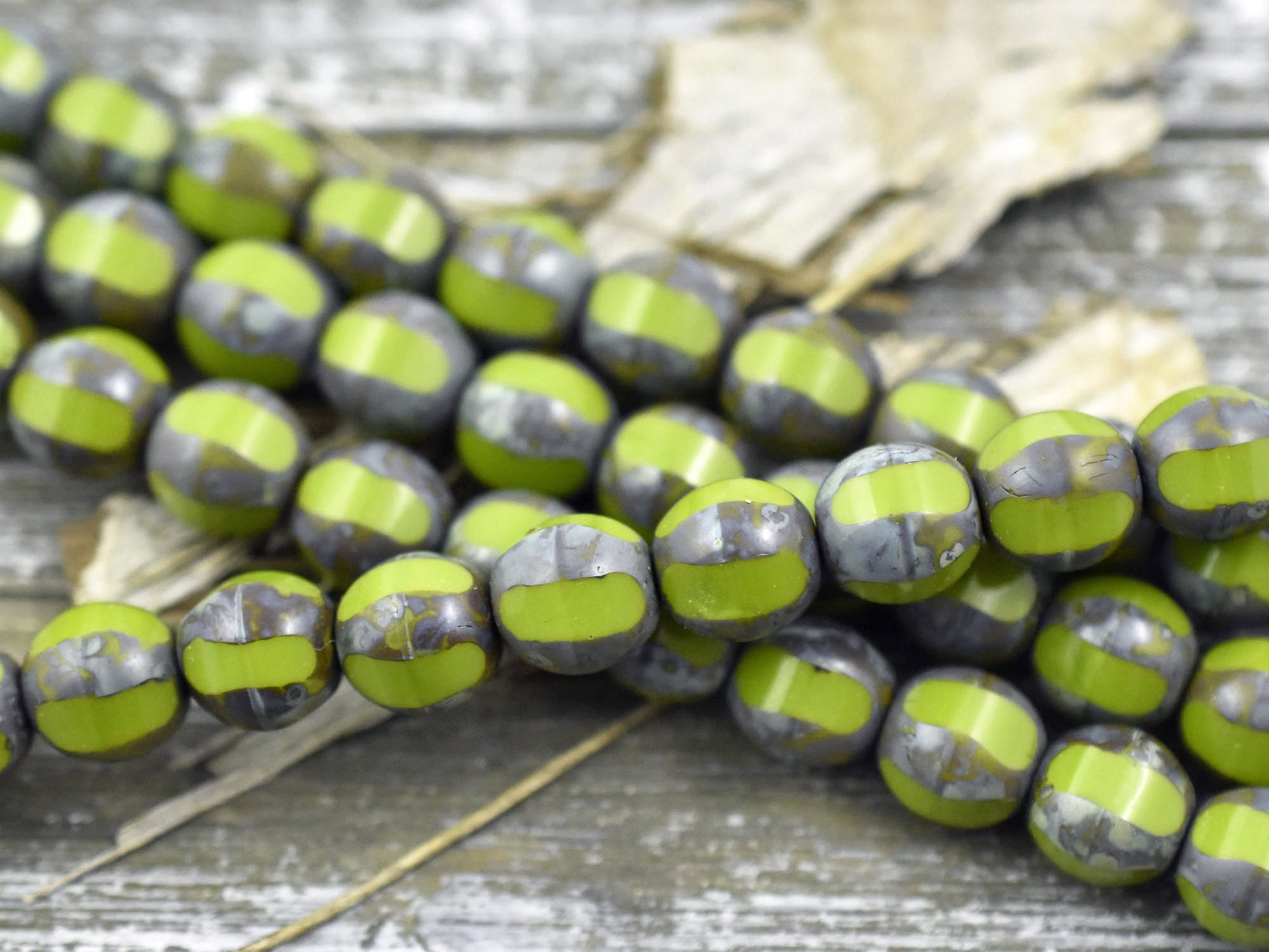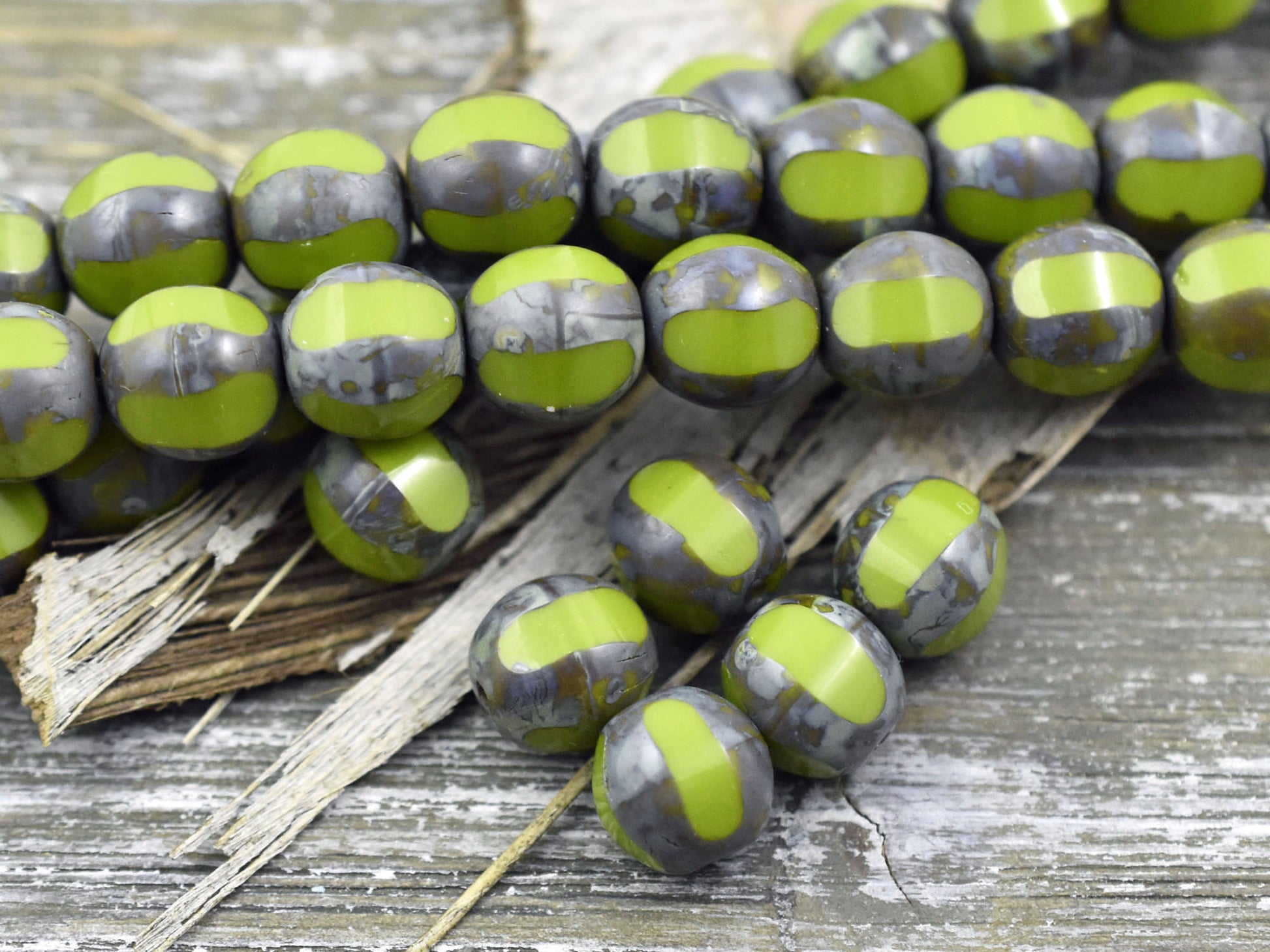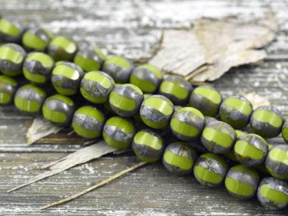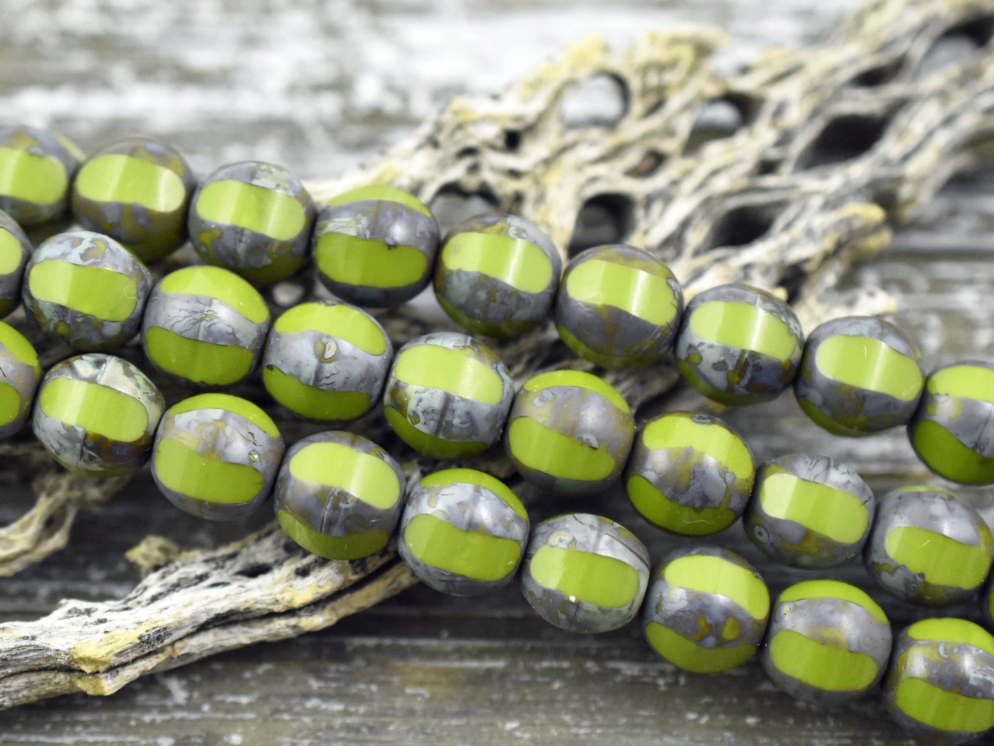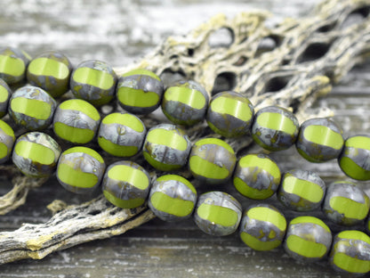 *10* 10mm Chartreuse Picasso Window Cut Round Beads