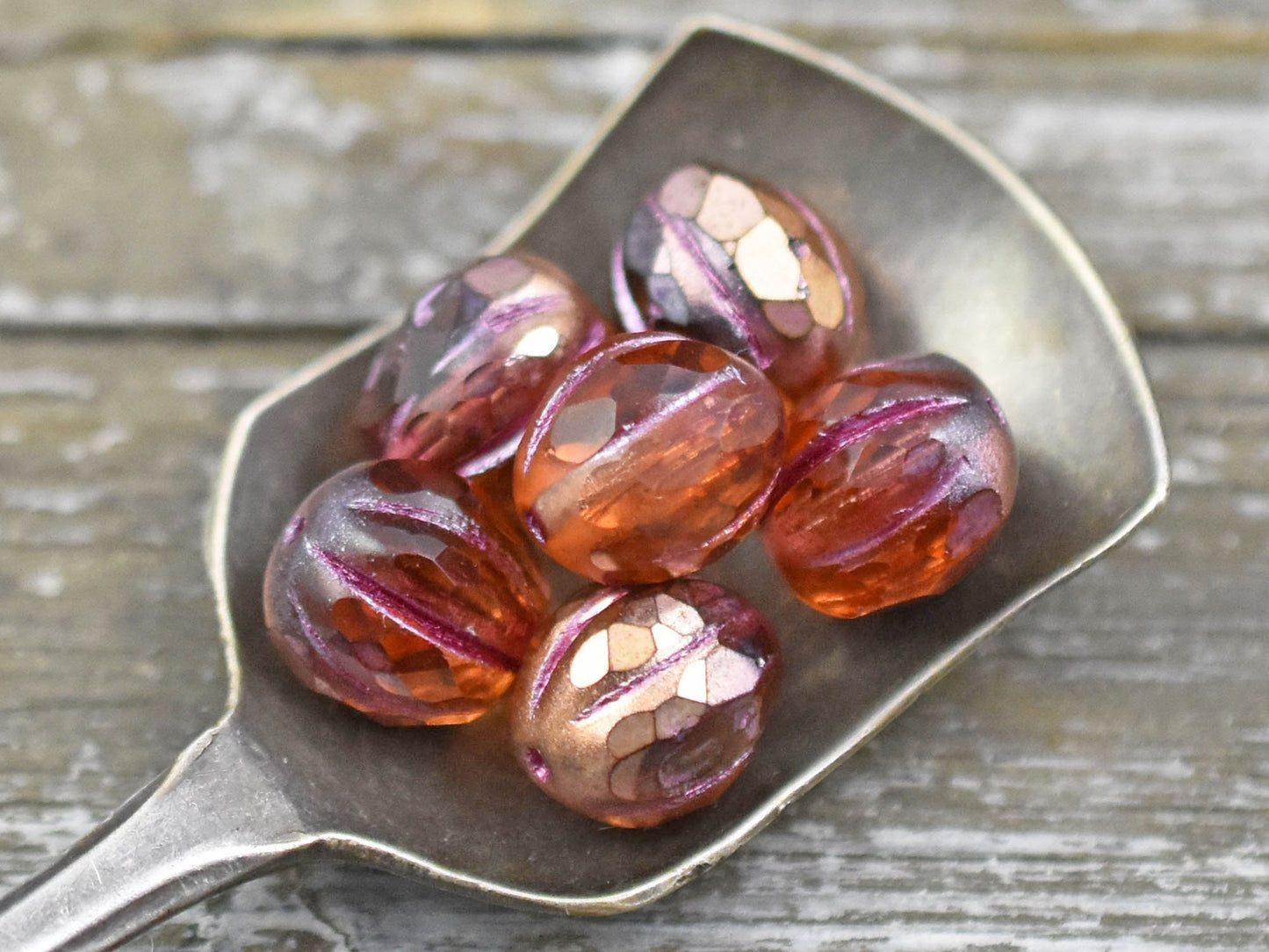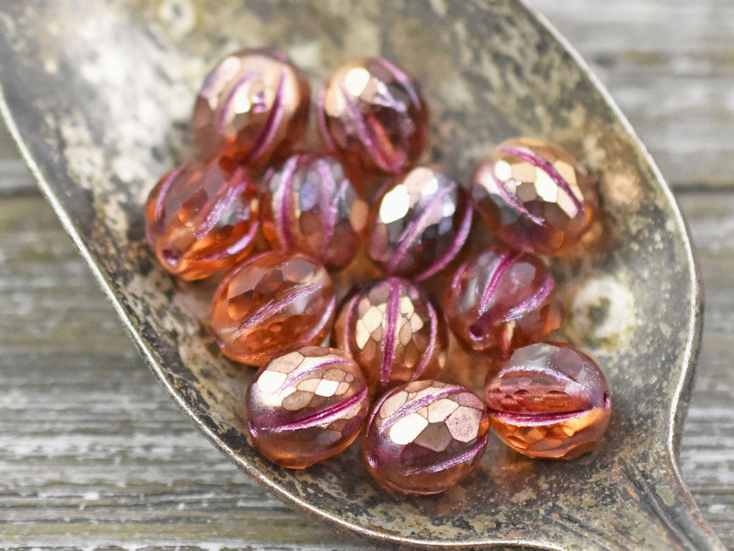 *10* 10mm Metallic Pink Washed Peach Copper Rainbow Faceted Round Melon Beads