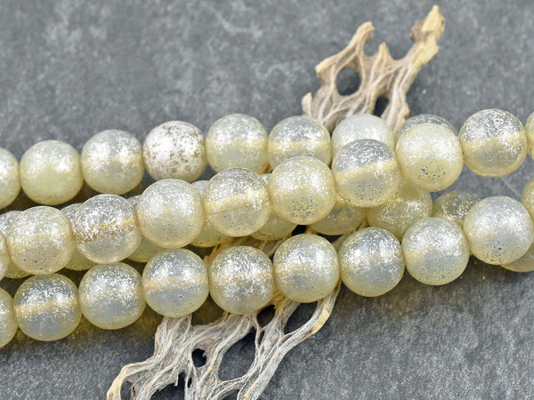 *10* 10mm Silver Washed Alabaster Opal Round Druk Beads