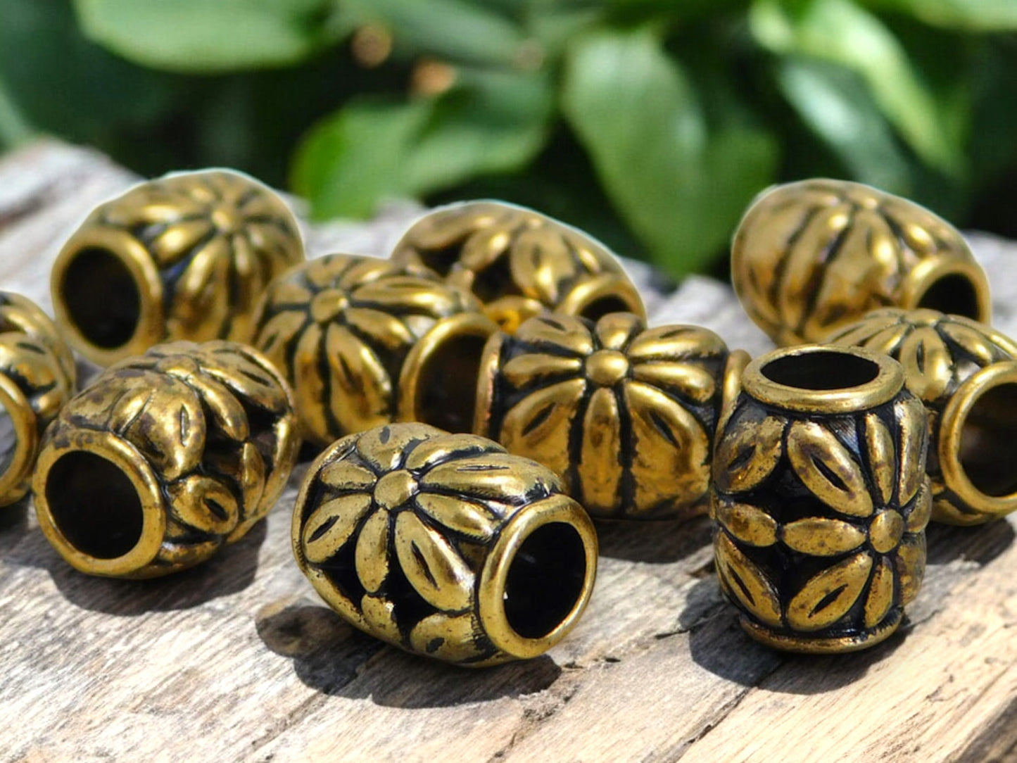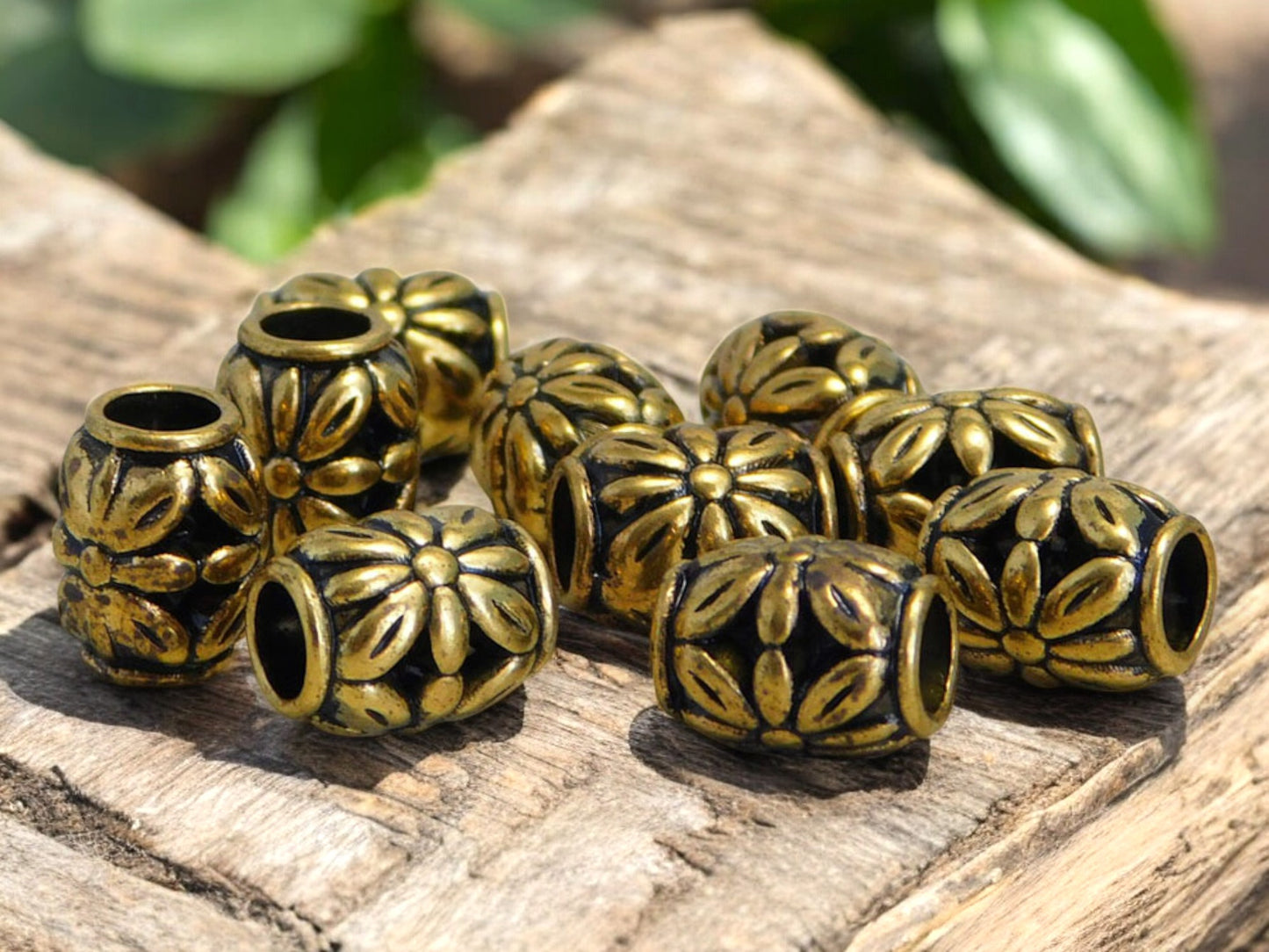 *20* 10x8mm Antique Gold Large Hole Barrel Beads