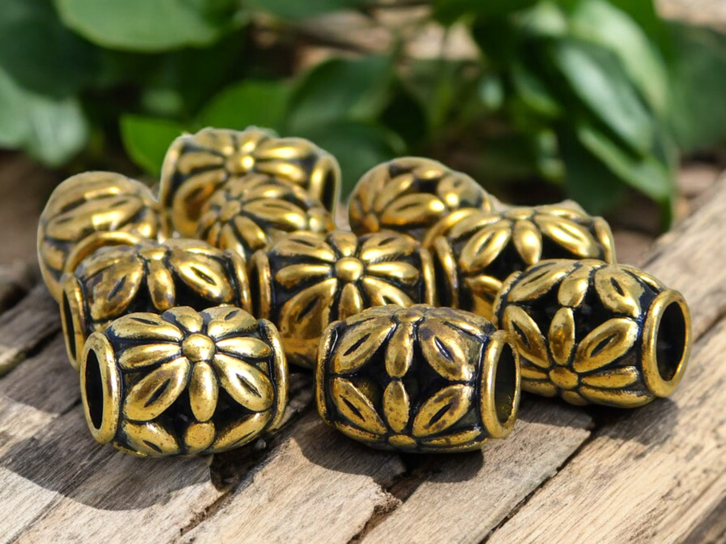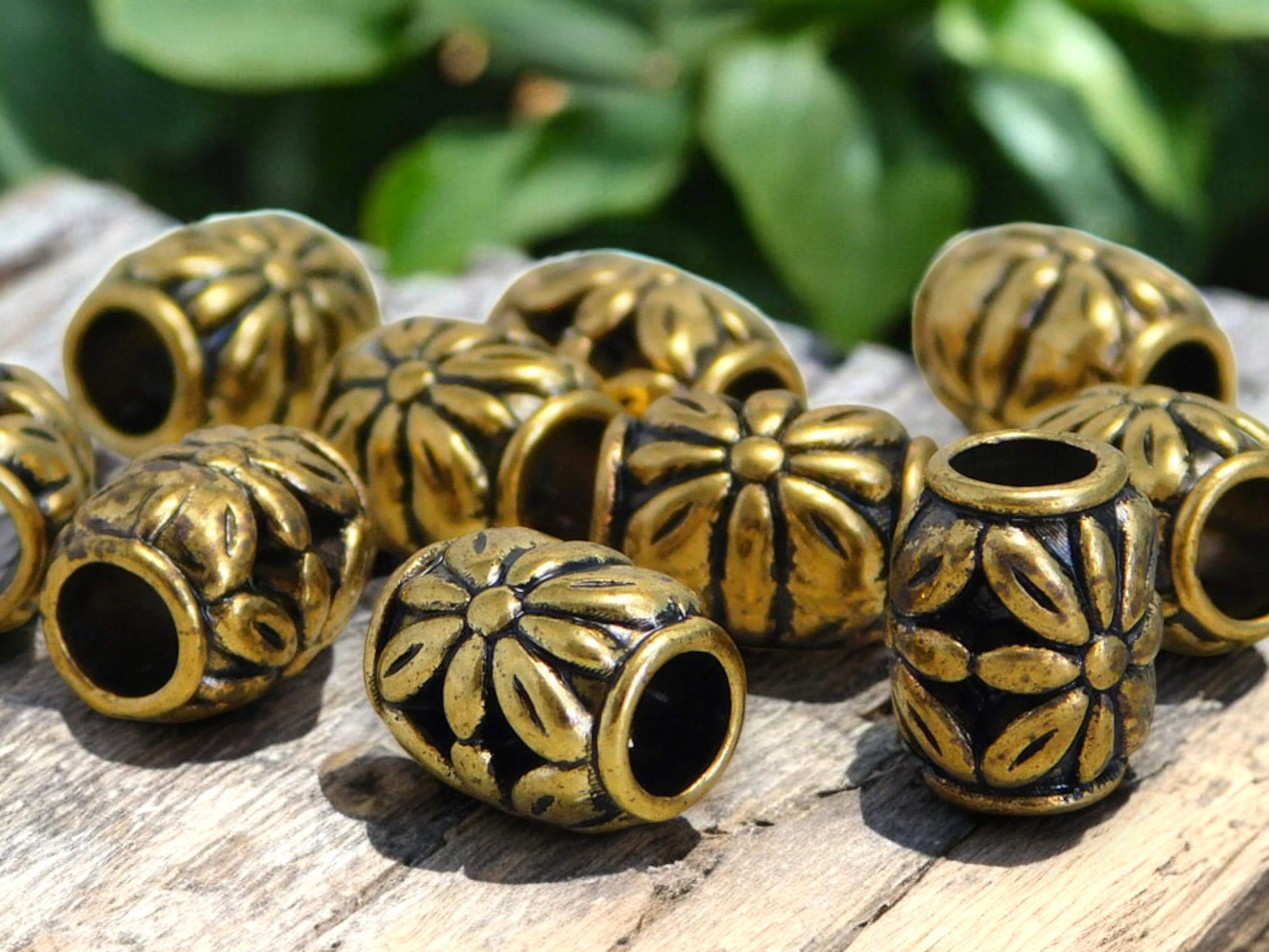 Type/Shape: Large hole metal barrel/drum beads -- great for leather cord projects