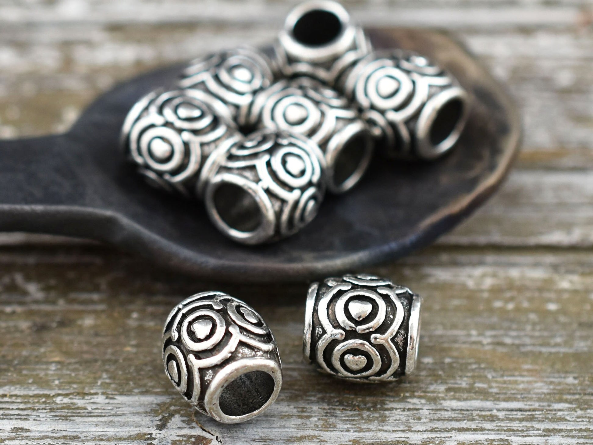 *10* 10x9mm Antique Silver Art Deco Barrel Beads