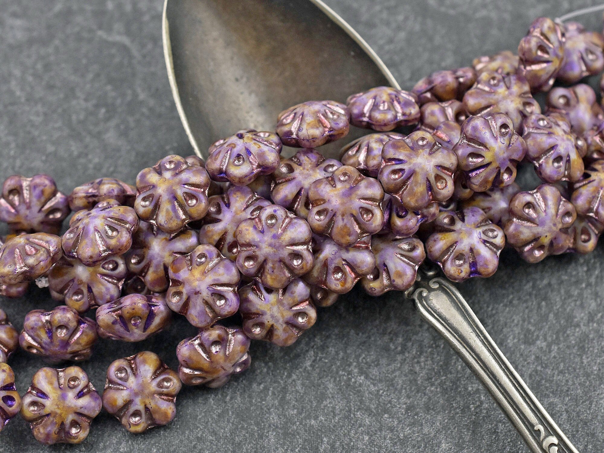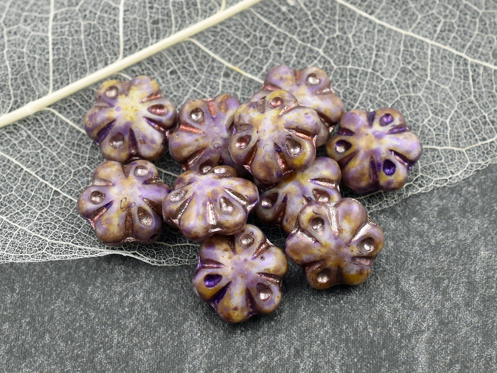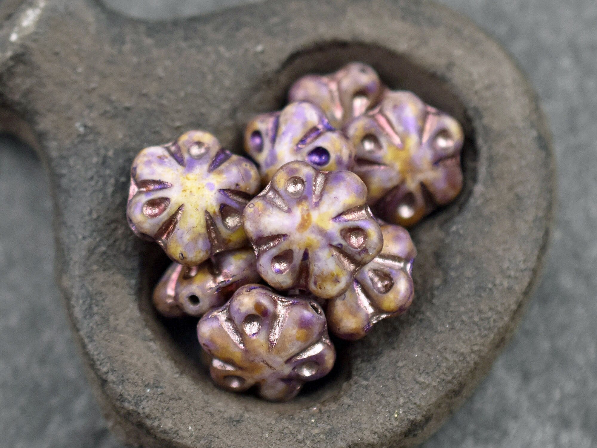 *10* 11mm Bronze Washed Alabaster Lilac Scalloped Flower Beads