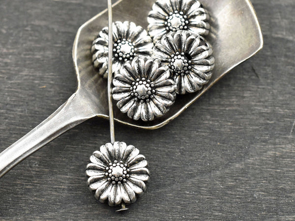 *20* 11x5mm Antique Silver Flat Flower Beads