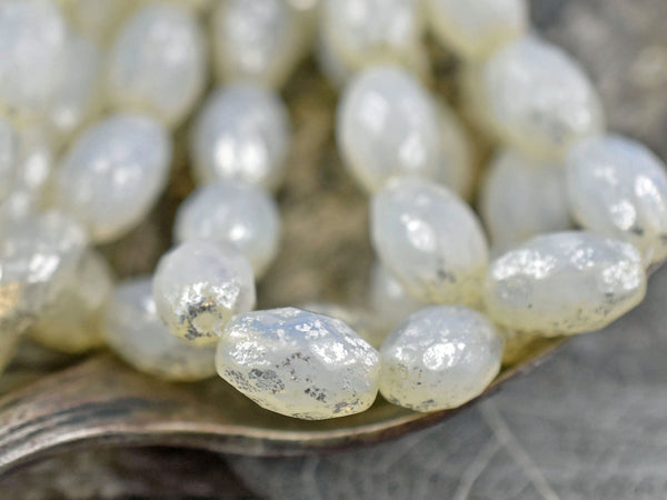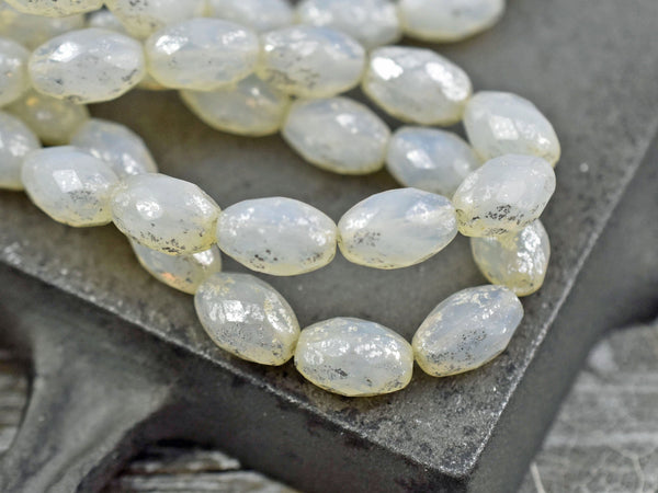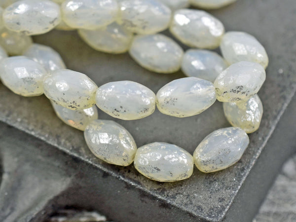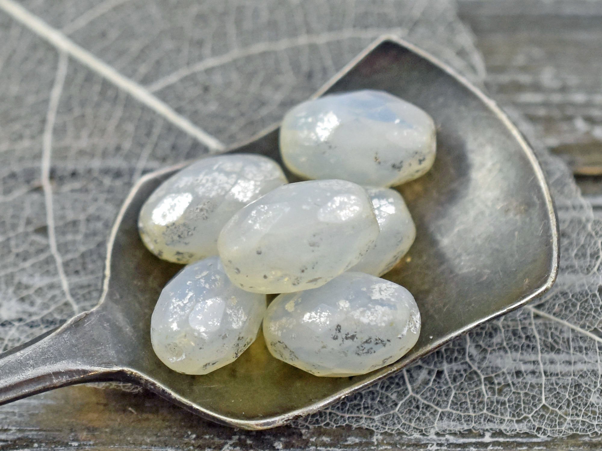 *10* 12x8mm Silver Mercury Washed Ivory Opal AB Faceted Oval Beads