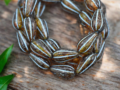 *10* 13x8mm Turquoise Washed Dark Amber Picasso Melon Drop Beads