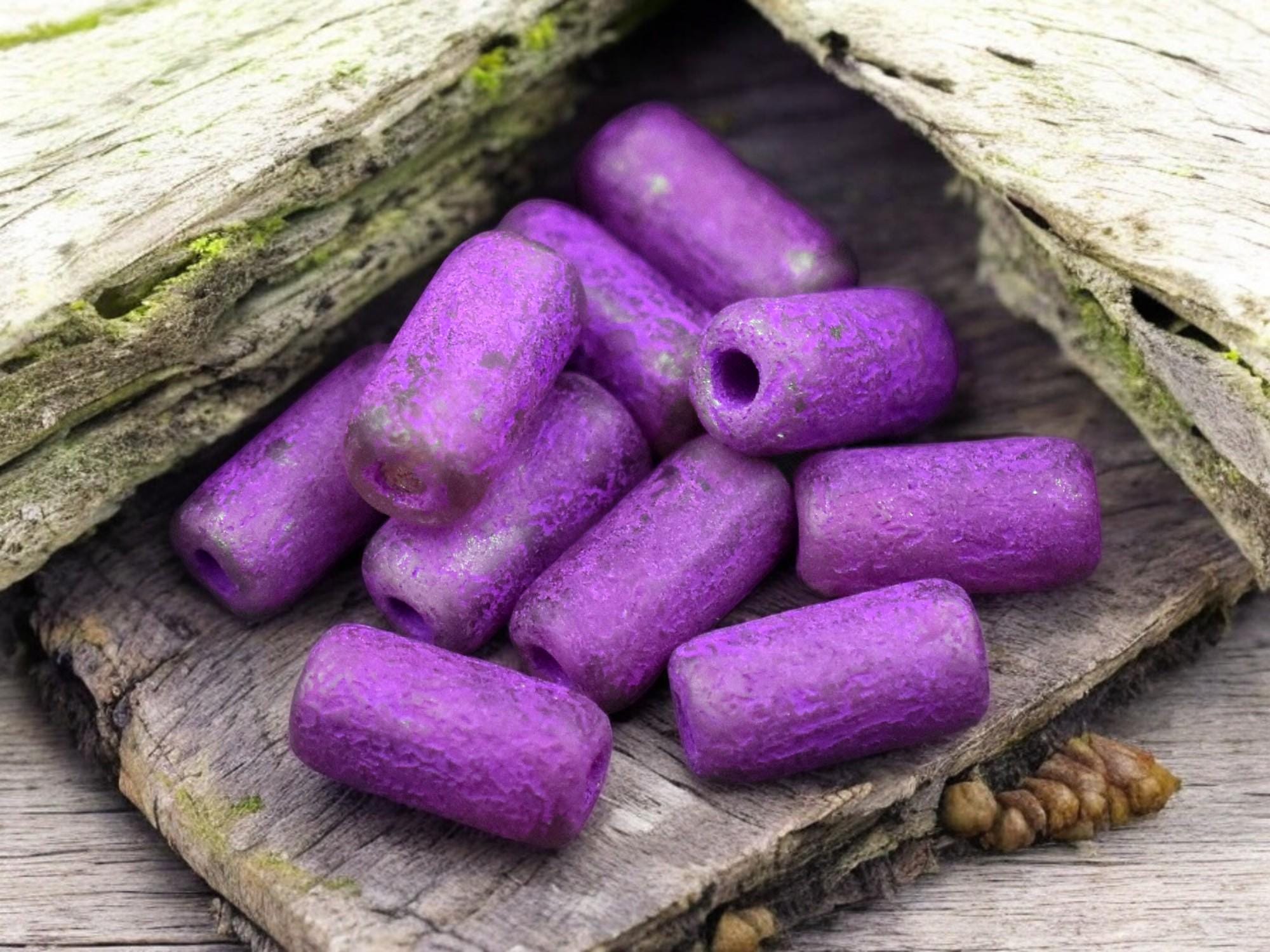 *10* 14x7mm Etched Purple Pansy Large Hole Tube Beads