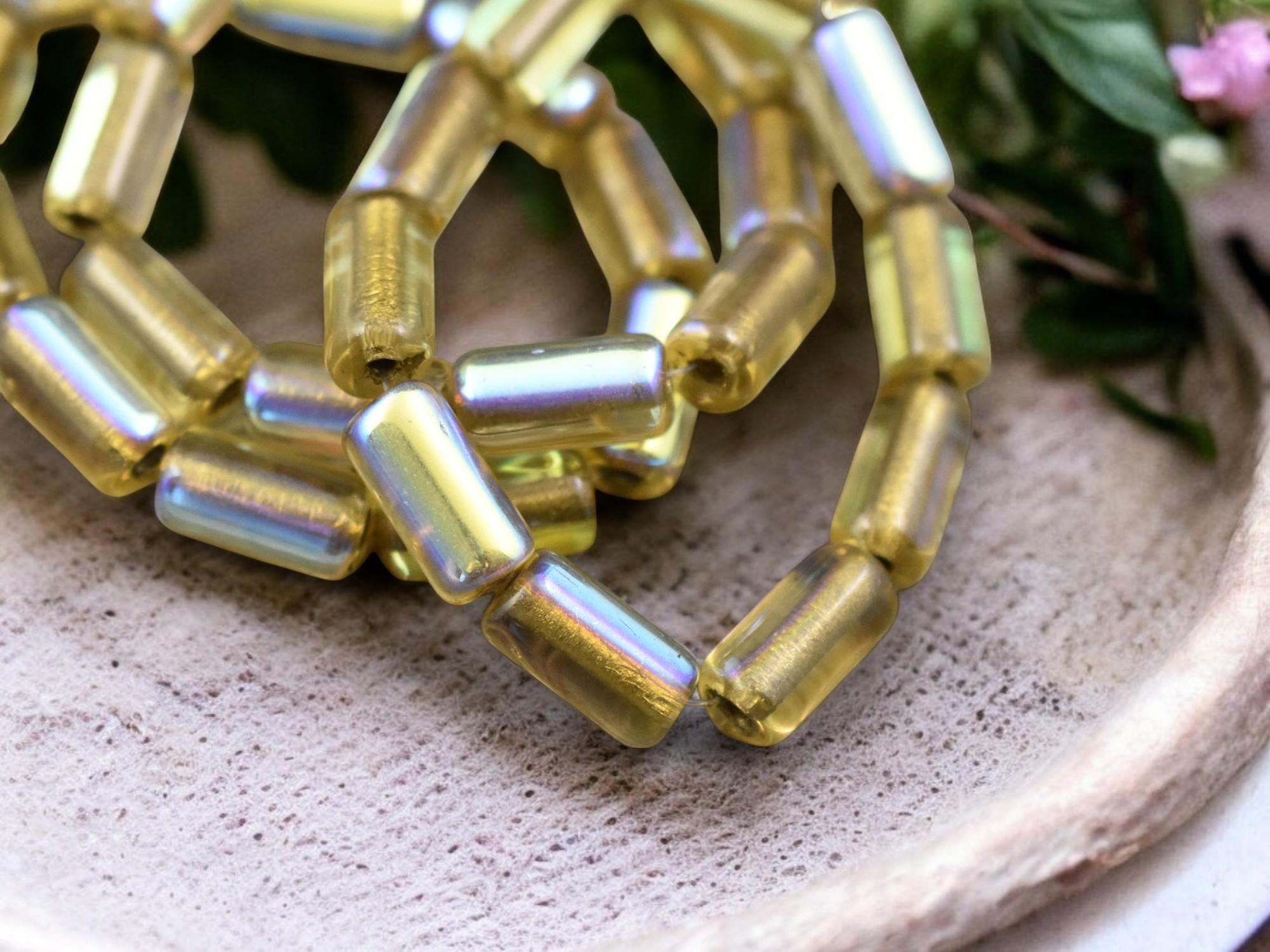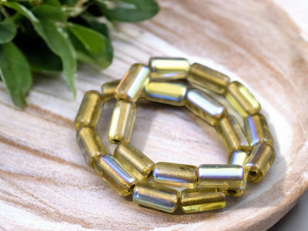 *10* 14x7mm Gold Lined Light Topaz AB Large Hole Tube Beads
