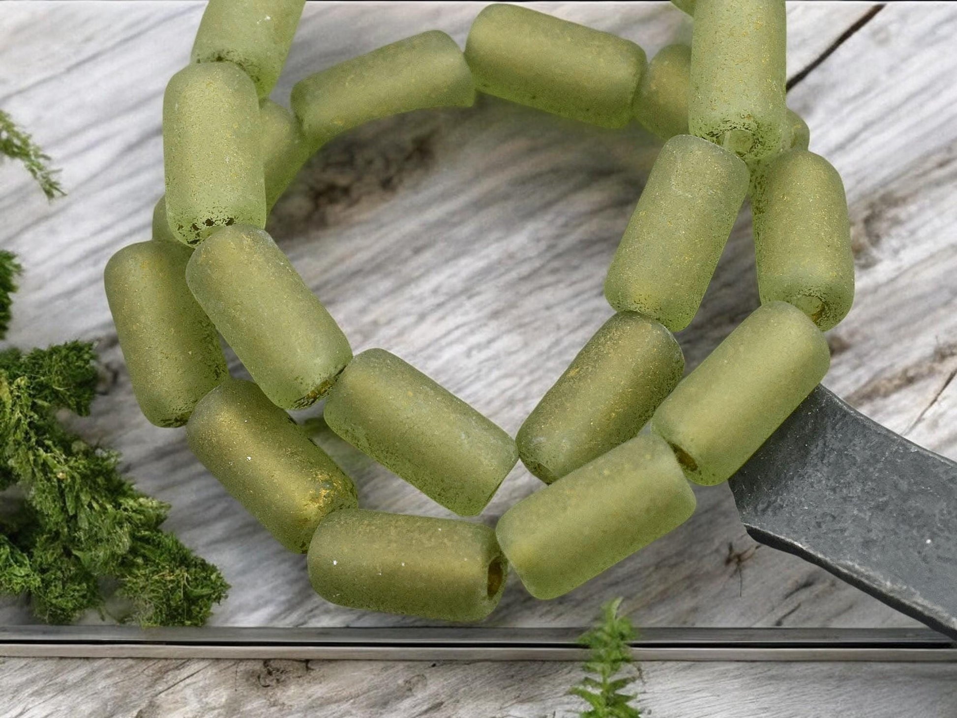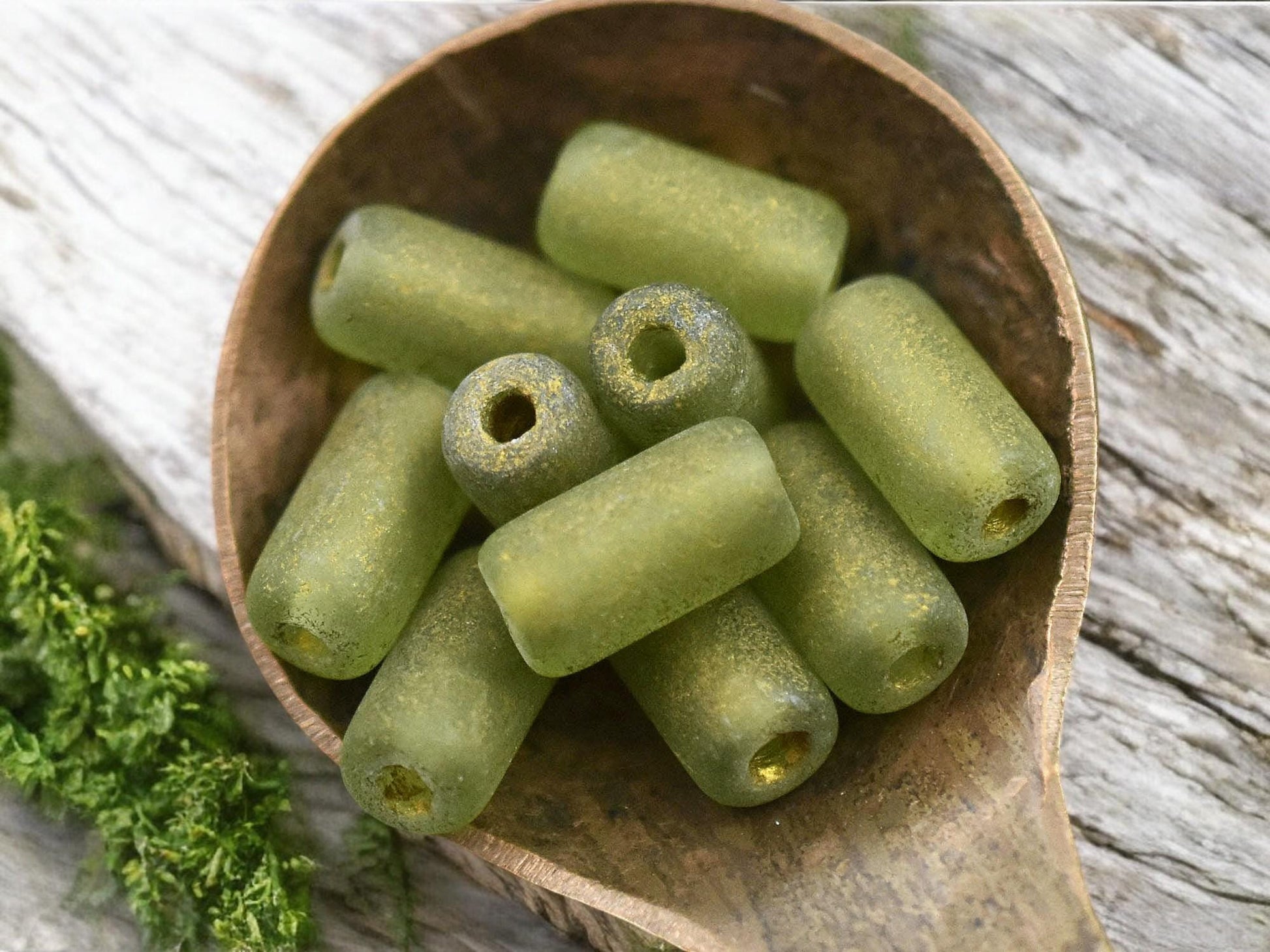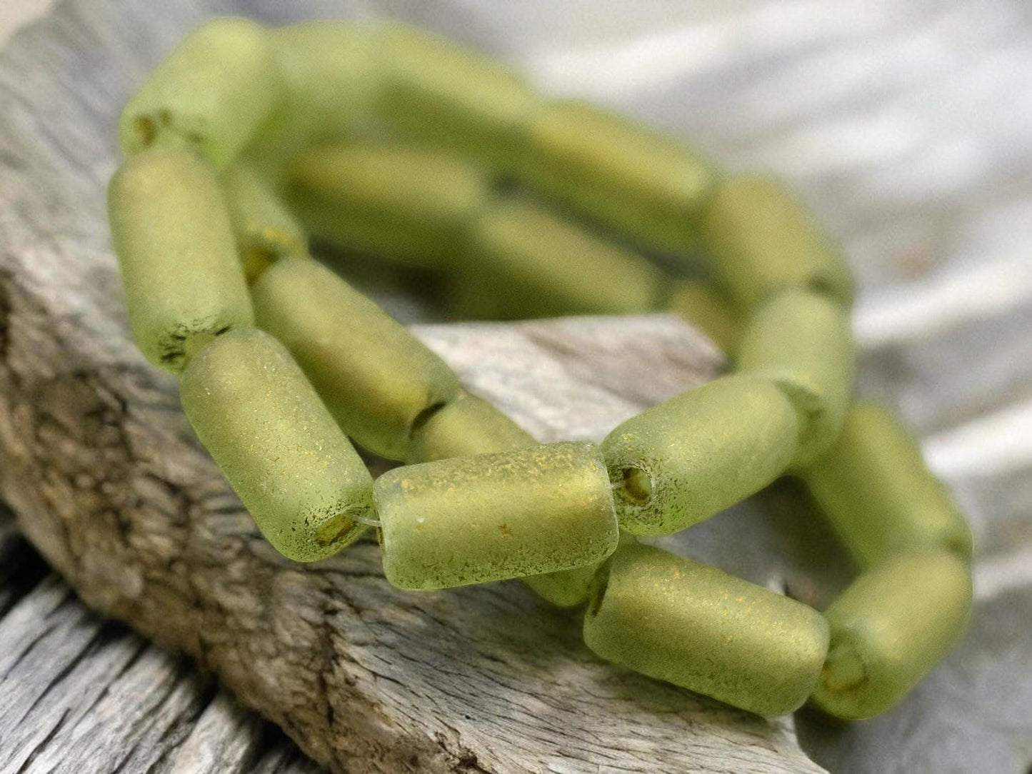 *10* 14x7mm Gold Washed Etched Peridot Large Hole Tube Beads
