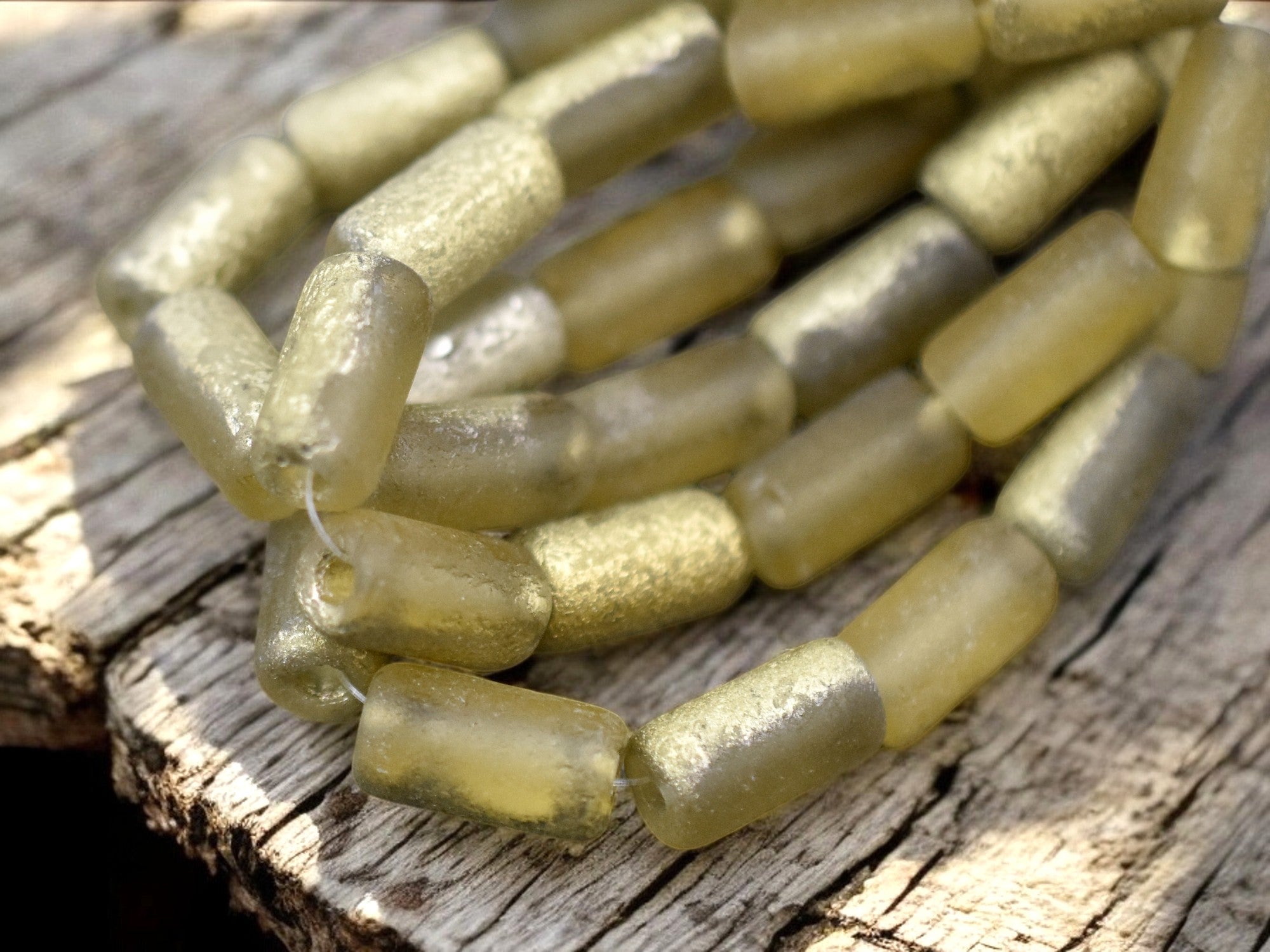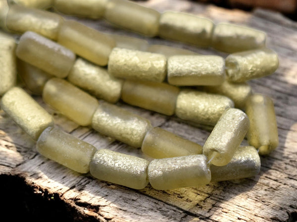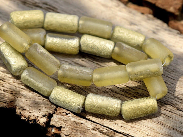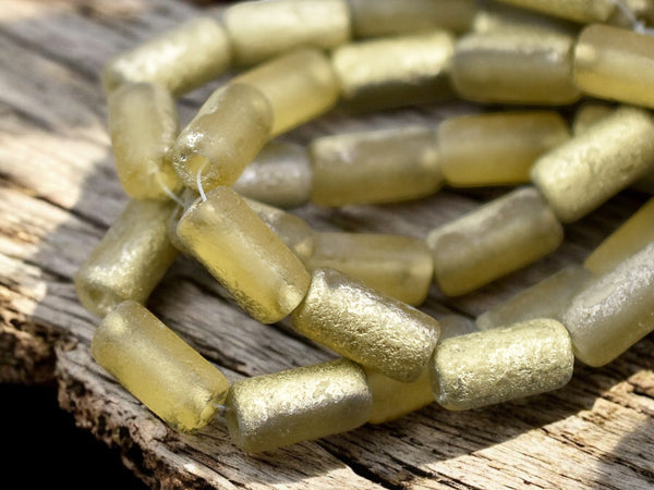 *10* 14x7mm Gold Washed Etched Yellow Topaz Large Hole Tube Beads