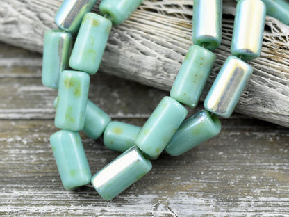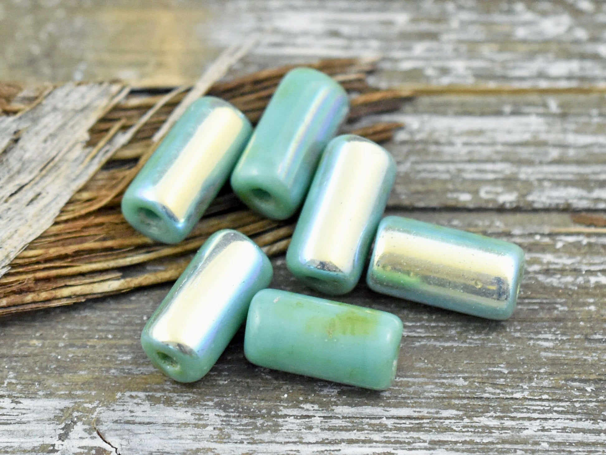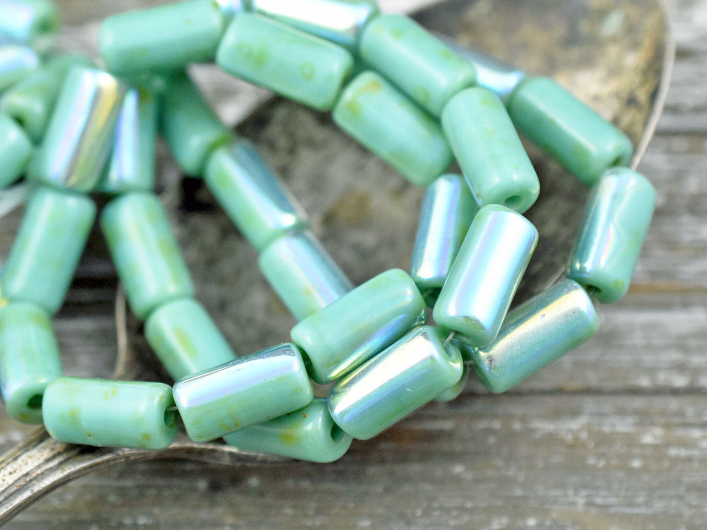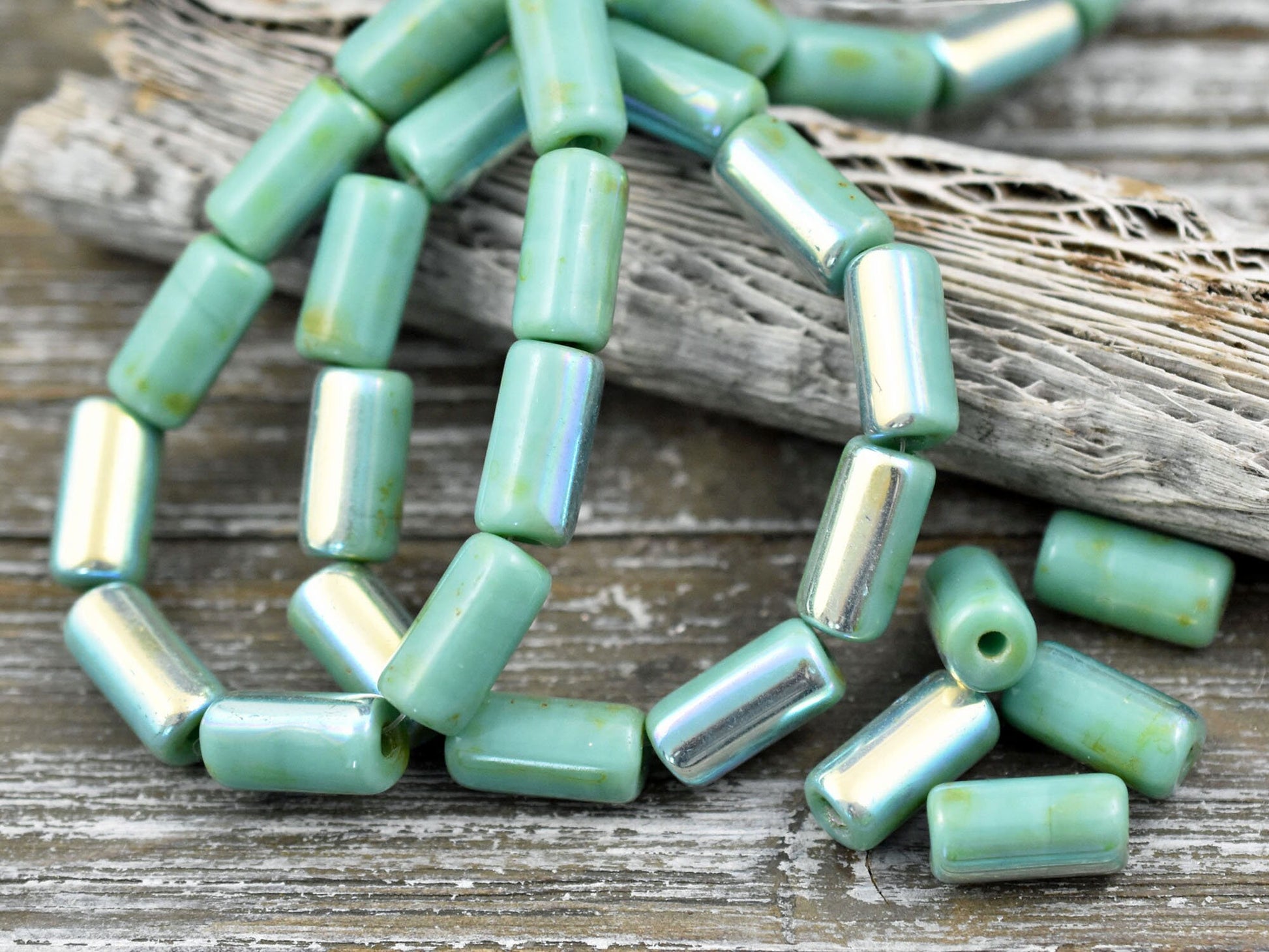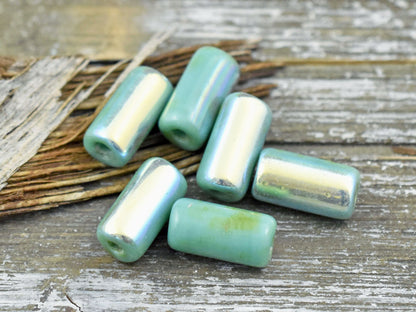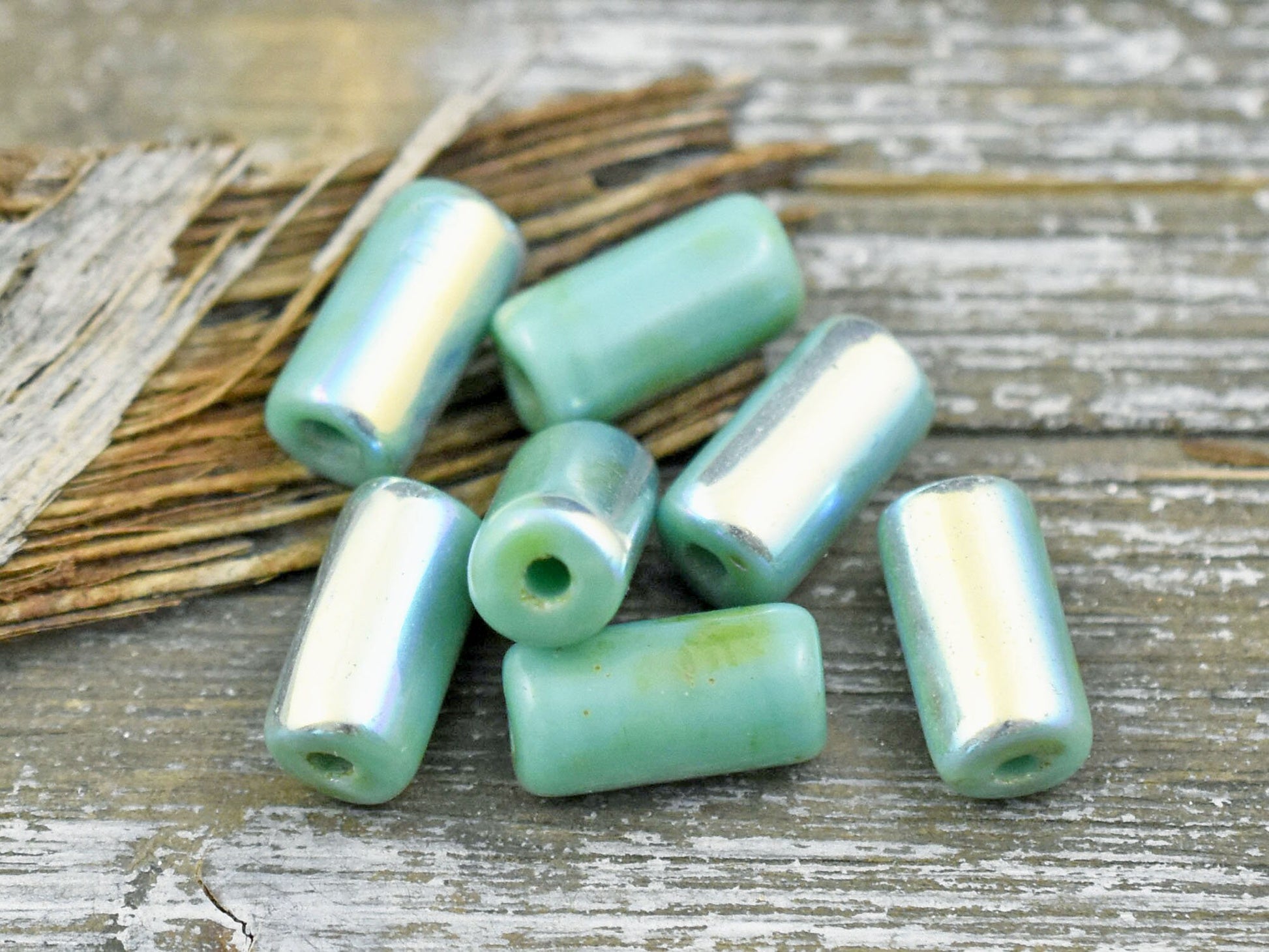 *10* 14x7mm Green Turquoise AB Large Hole Tube Beads