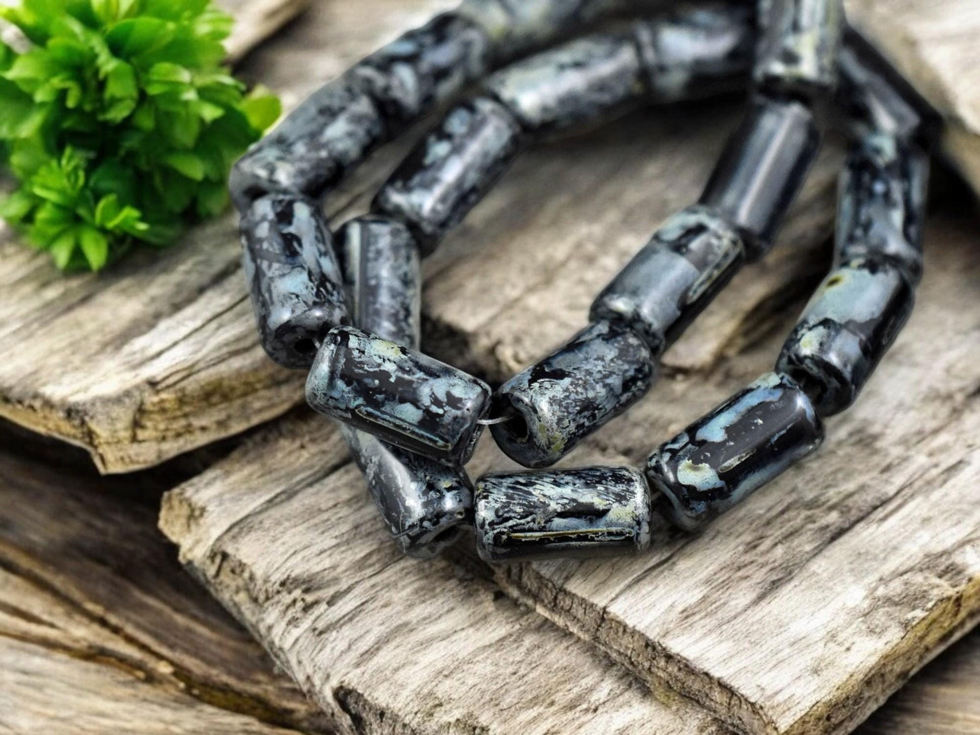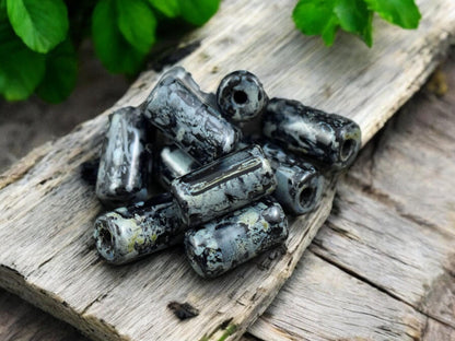*10* 14x7mm Jet Black Picasso Large Hole Tube Beads
