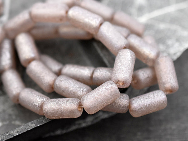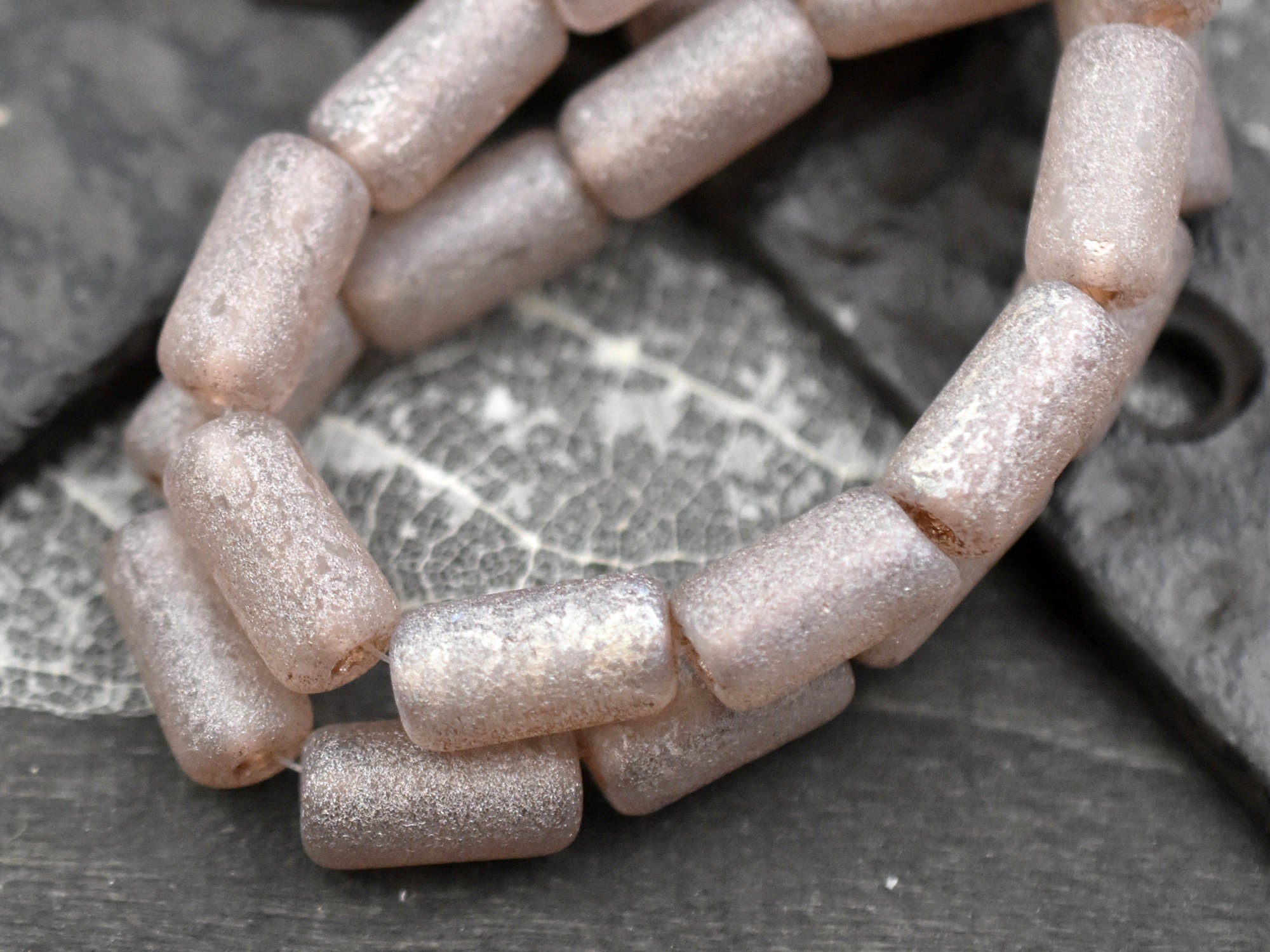 *10* 14x7mm Metallic Beige Washed Etched Crystal Large Hole Tube Beads