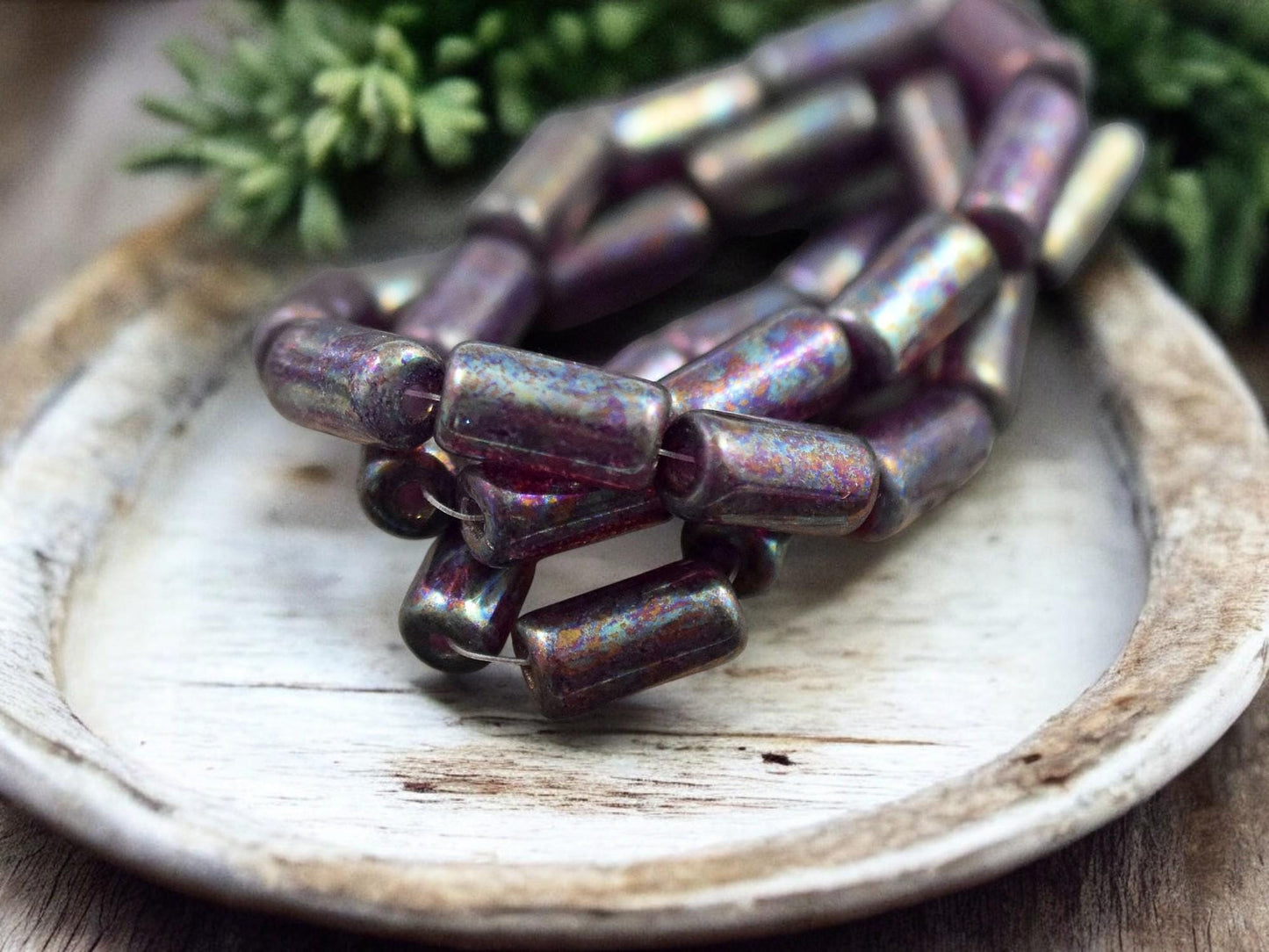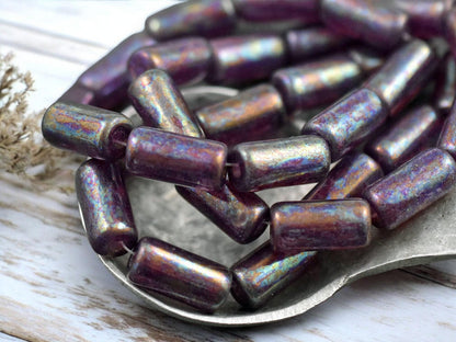 *10* 14x7mm Metallic Purple MOP Large Hole Tube Beads