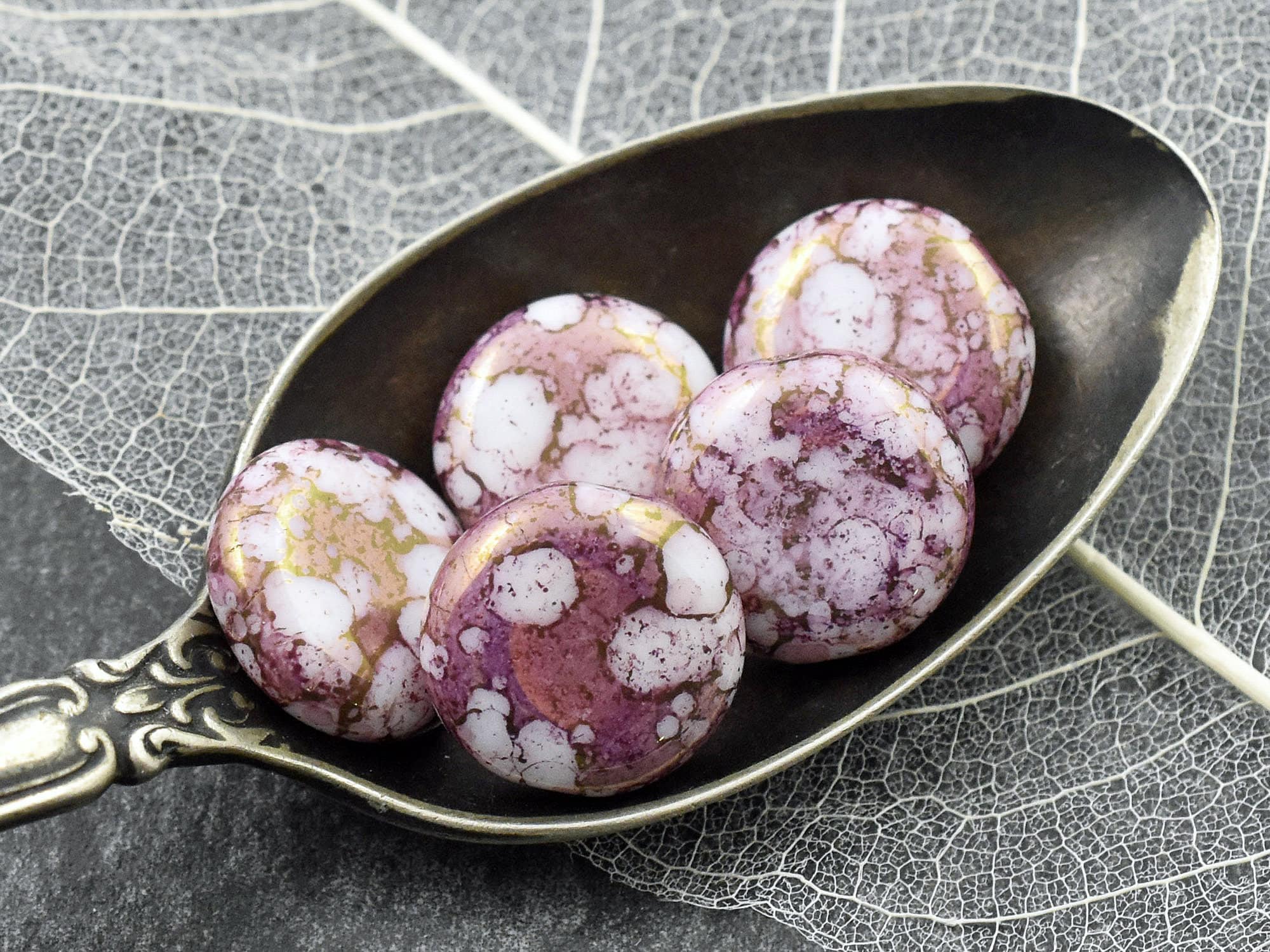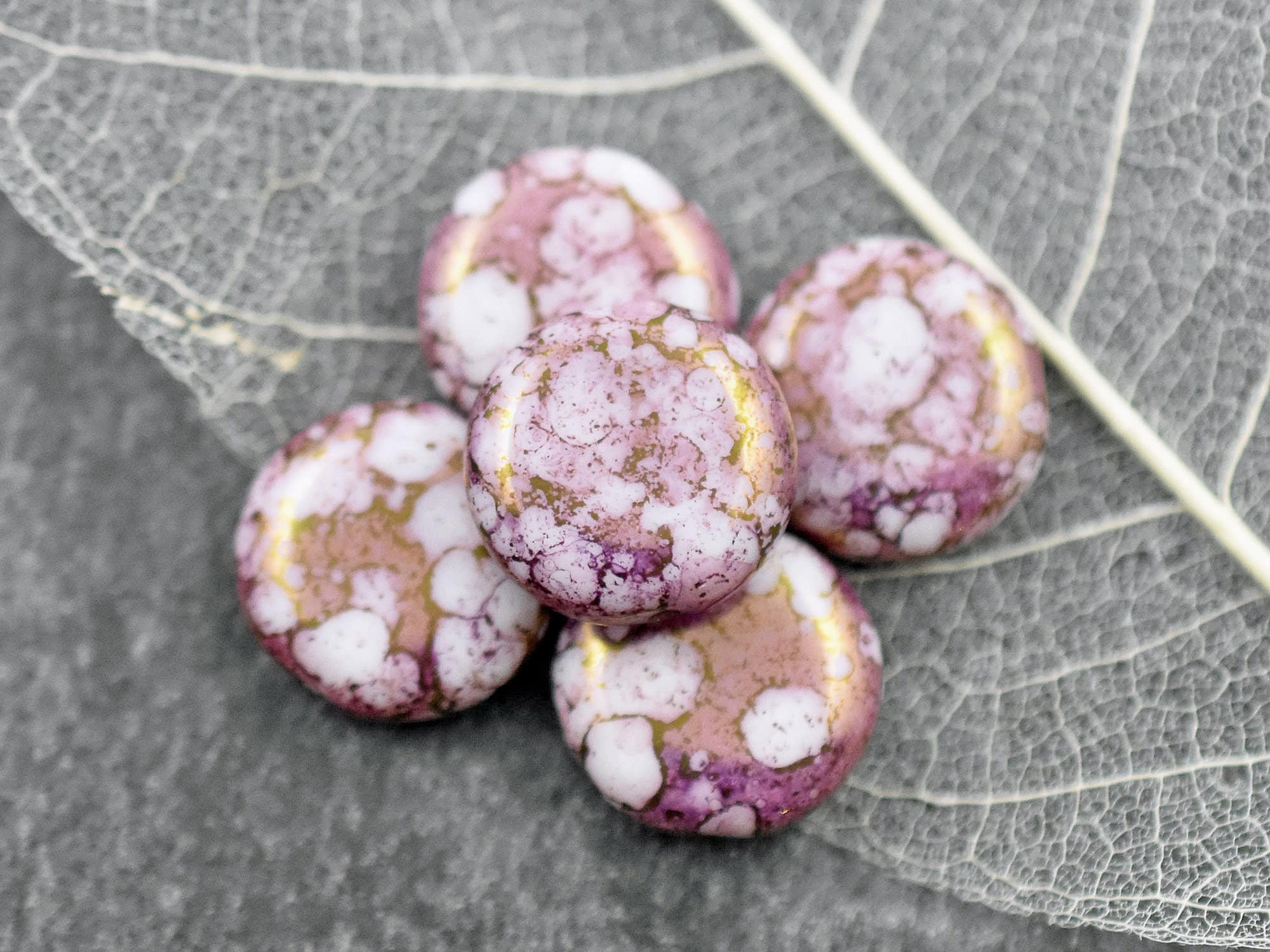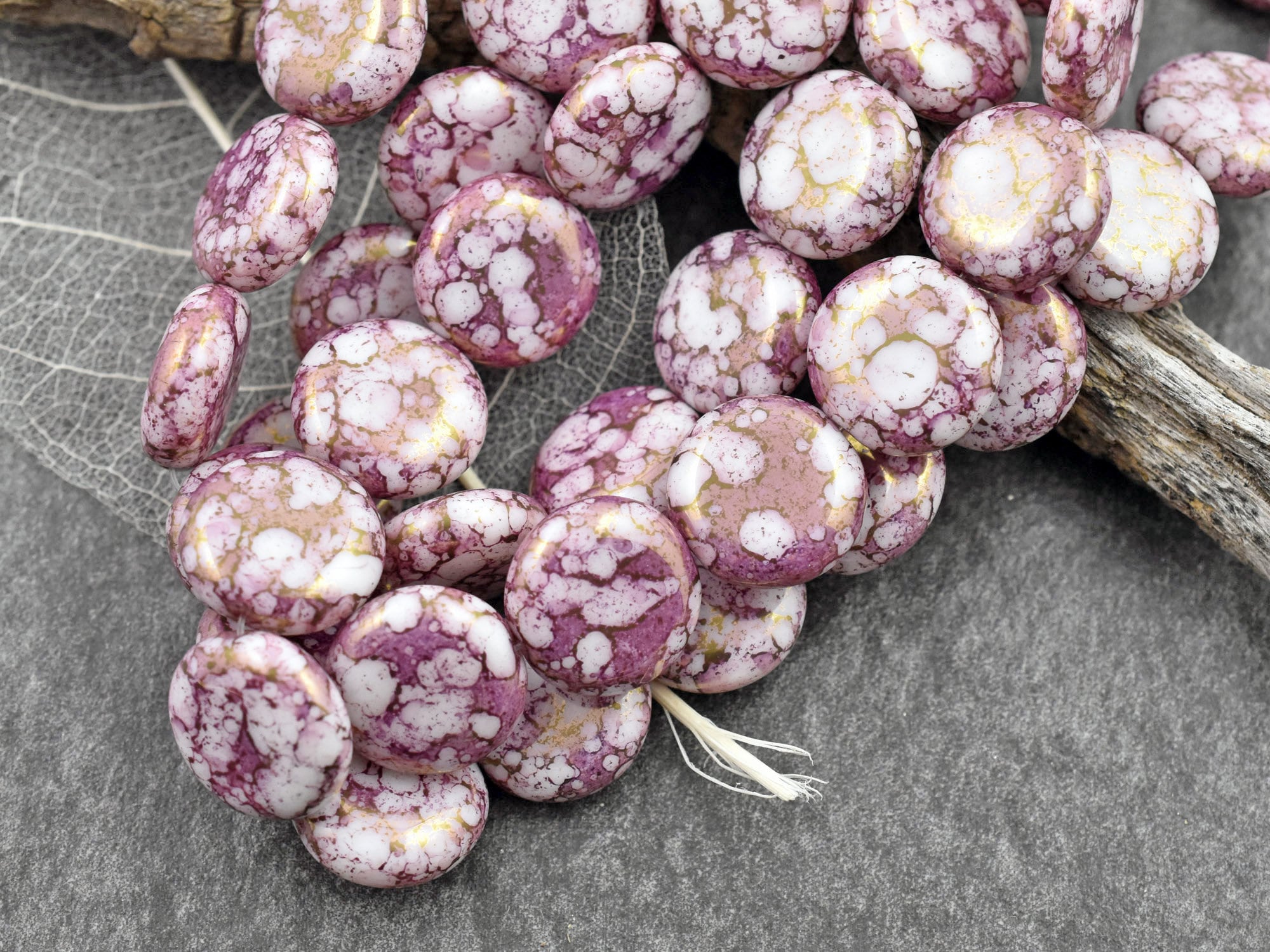 *10* 15mm Pink Luster Picasso Washed Alabaster Thick Coin Beads