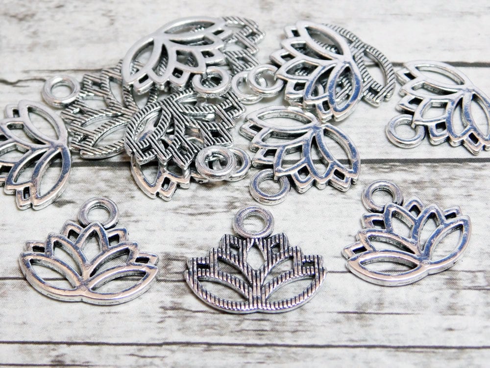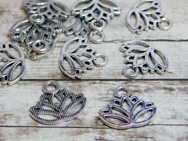 *10* 15x17mm Antique Silver Lotus Flower Charms