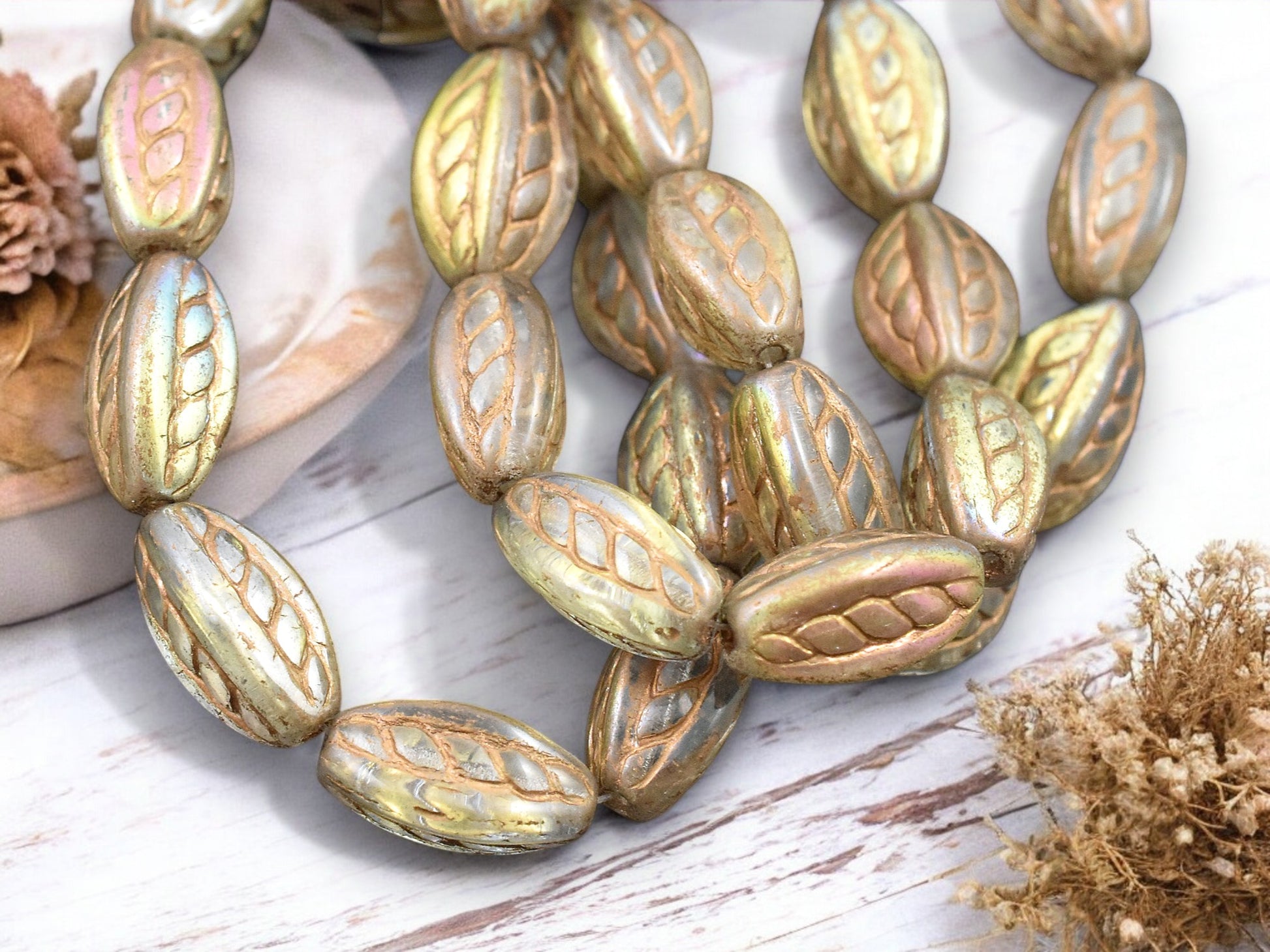 ♥ Type/Shape: Czech pressed glass wedged oval beads