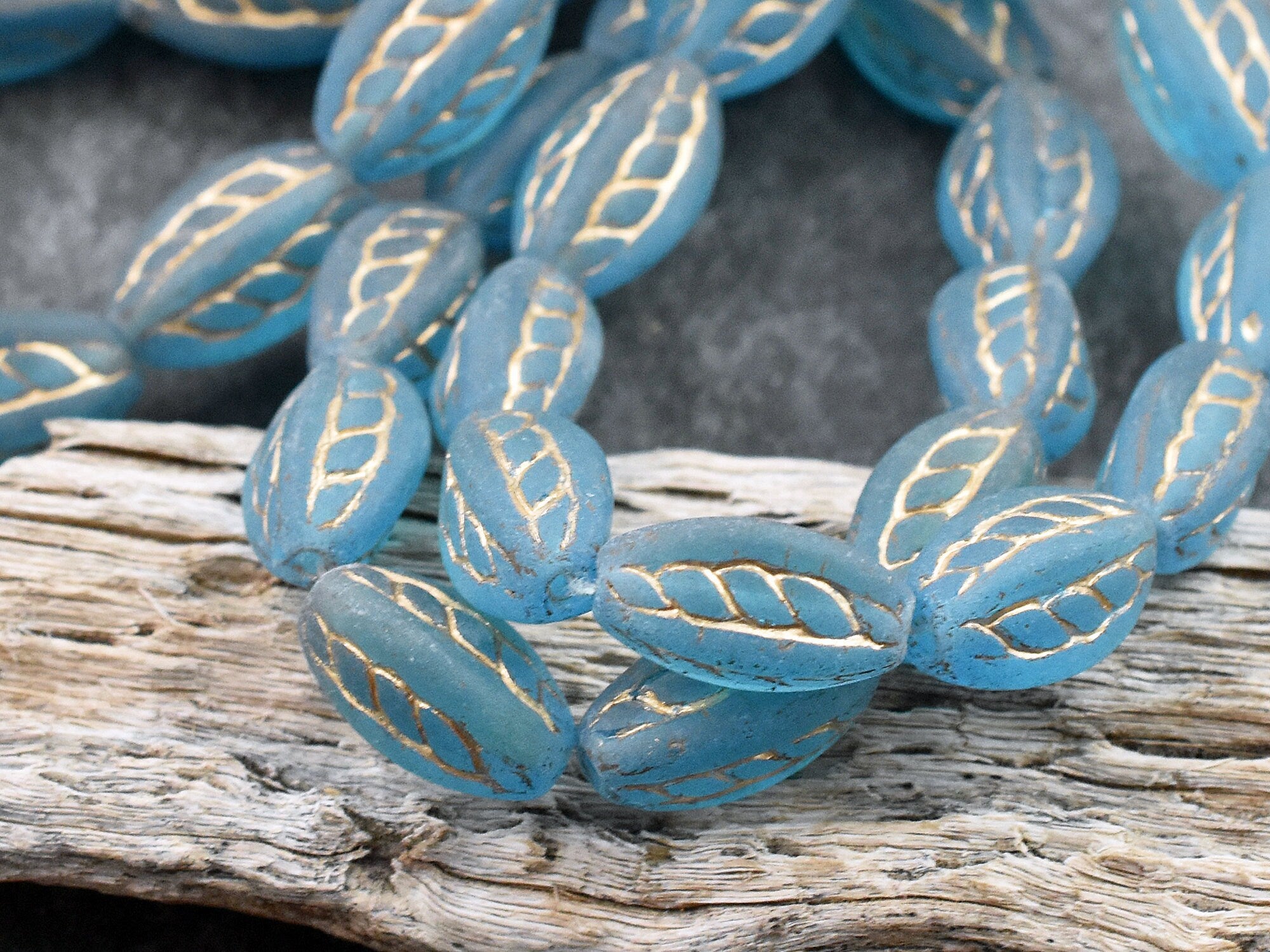 *10* 15x9mm Gold Washed Matte Capri Blue Twisted Oval Beads