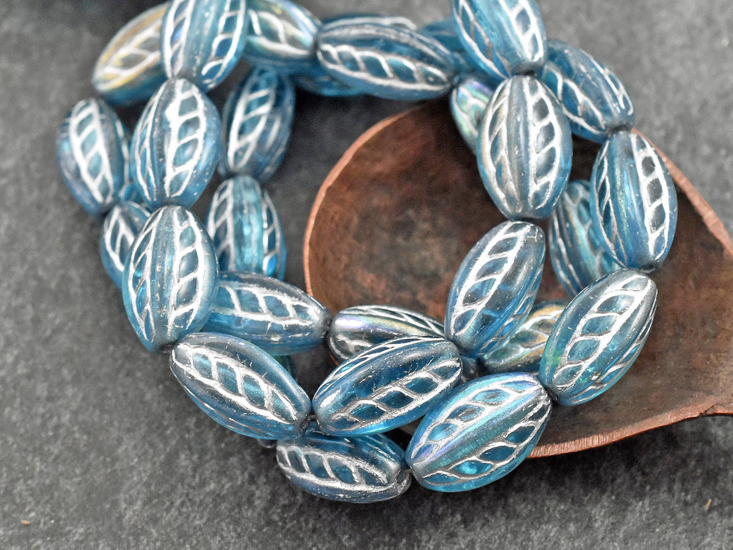 *10* 15x9mm Silver Washed Transparent Blue AB Luster Twisted Oval Beads