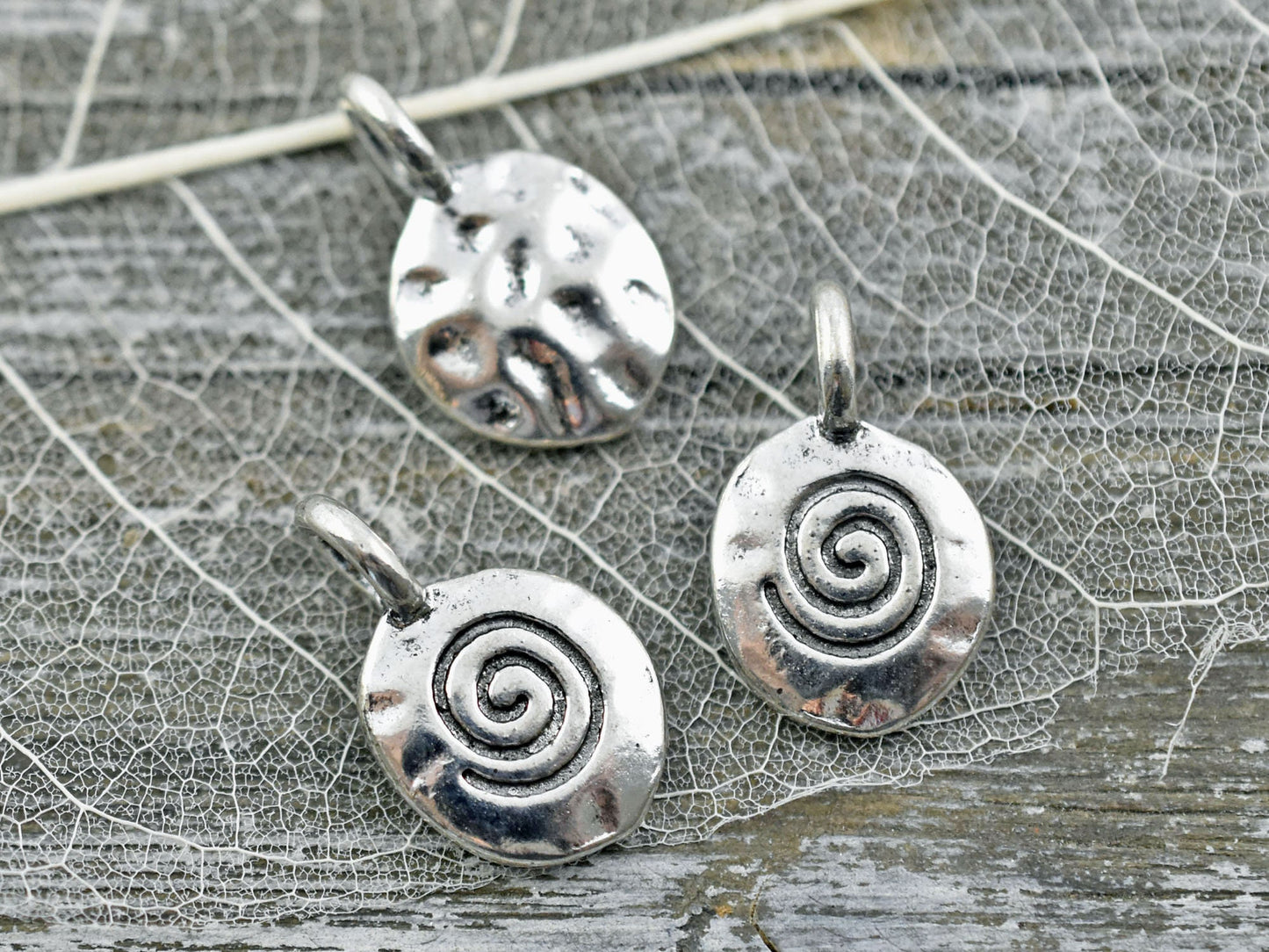 *10* 19x11m Antique Silver Spiral Tag Charms
