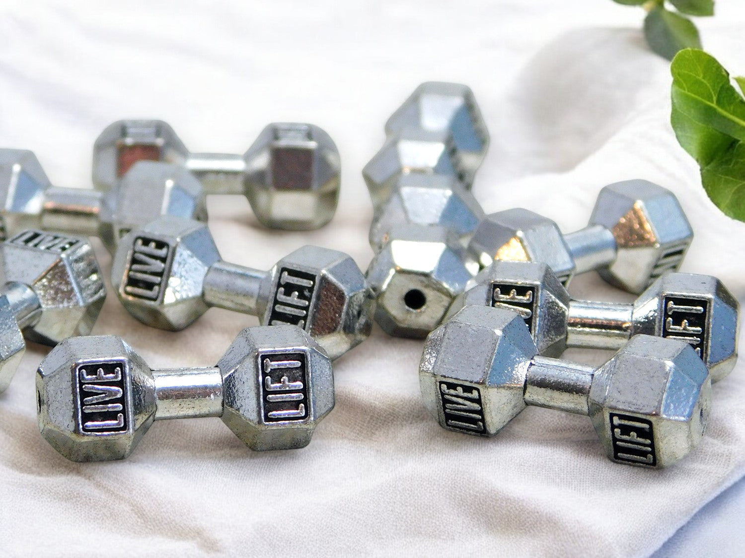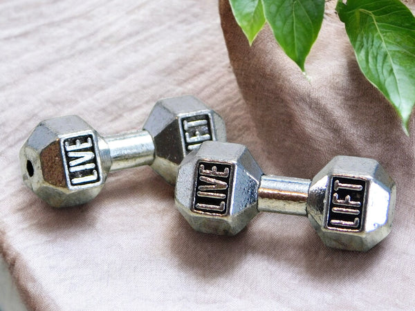 *10* 19x8mm Antique Silver Weight Lifting Beads