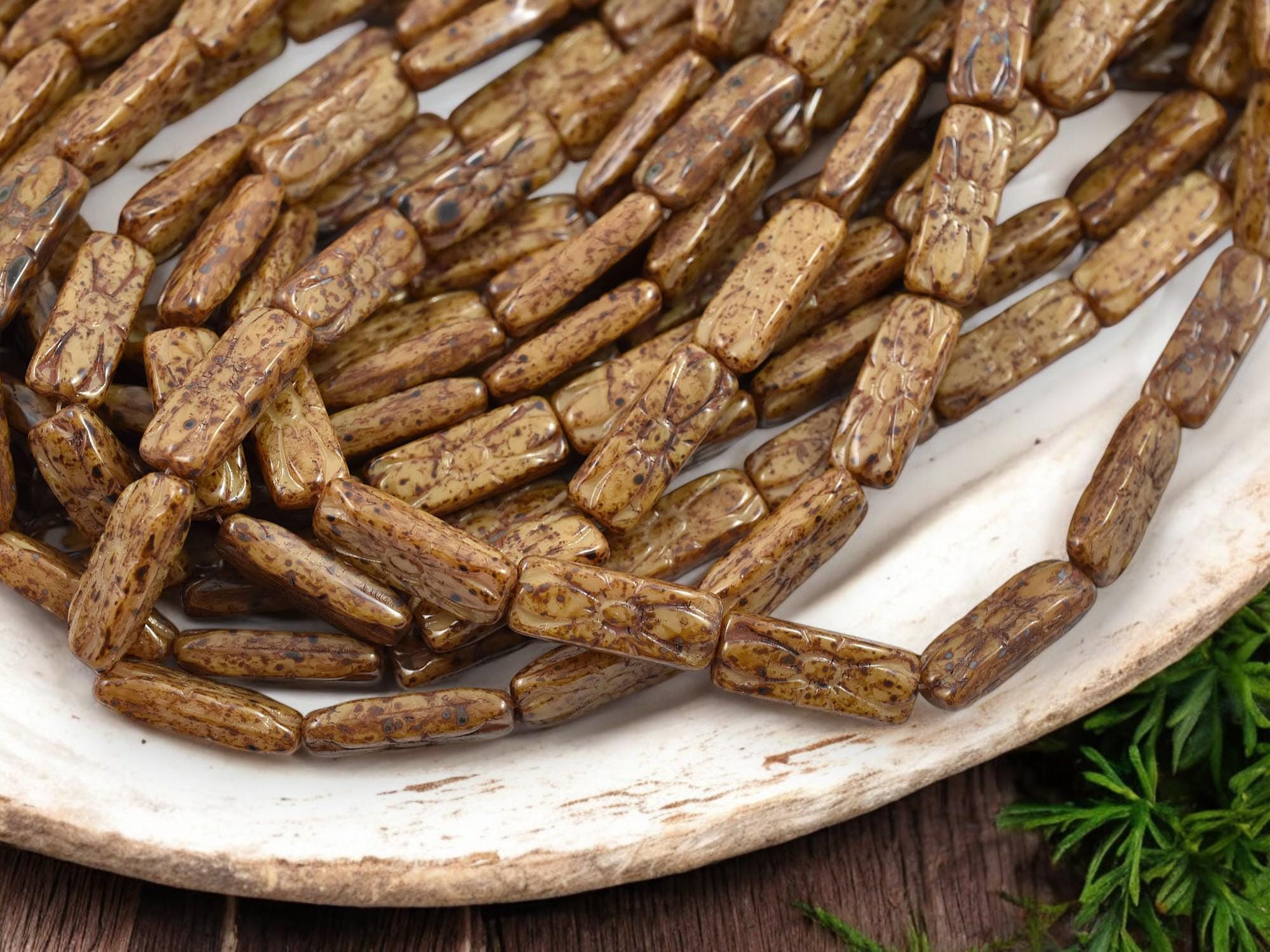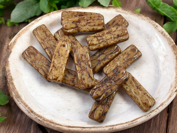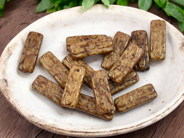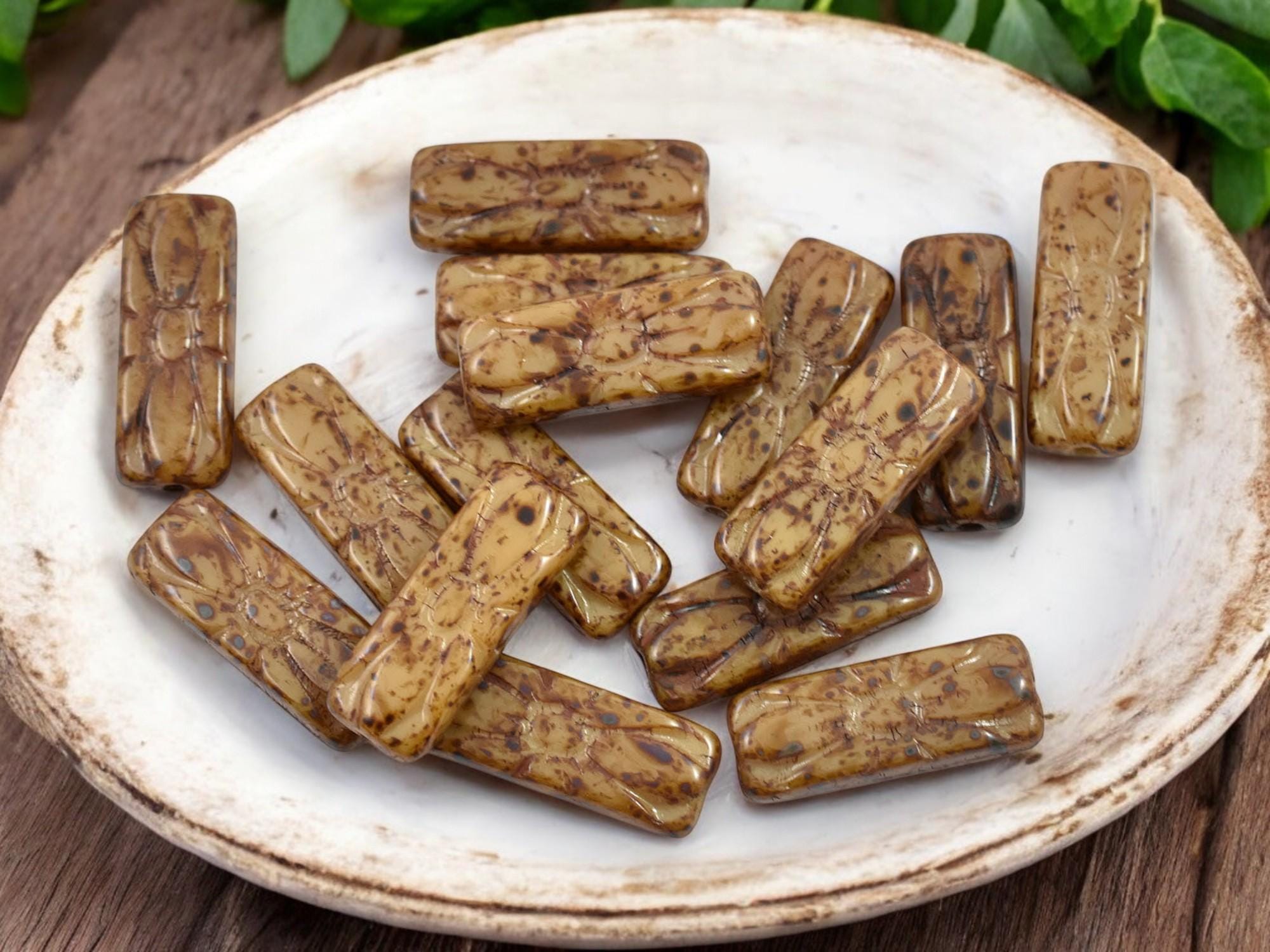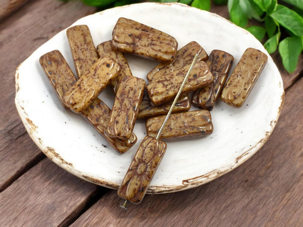*25* 20x8mm Camel Beige Picasso Flower Rectangle Beads