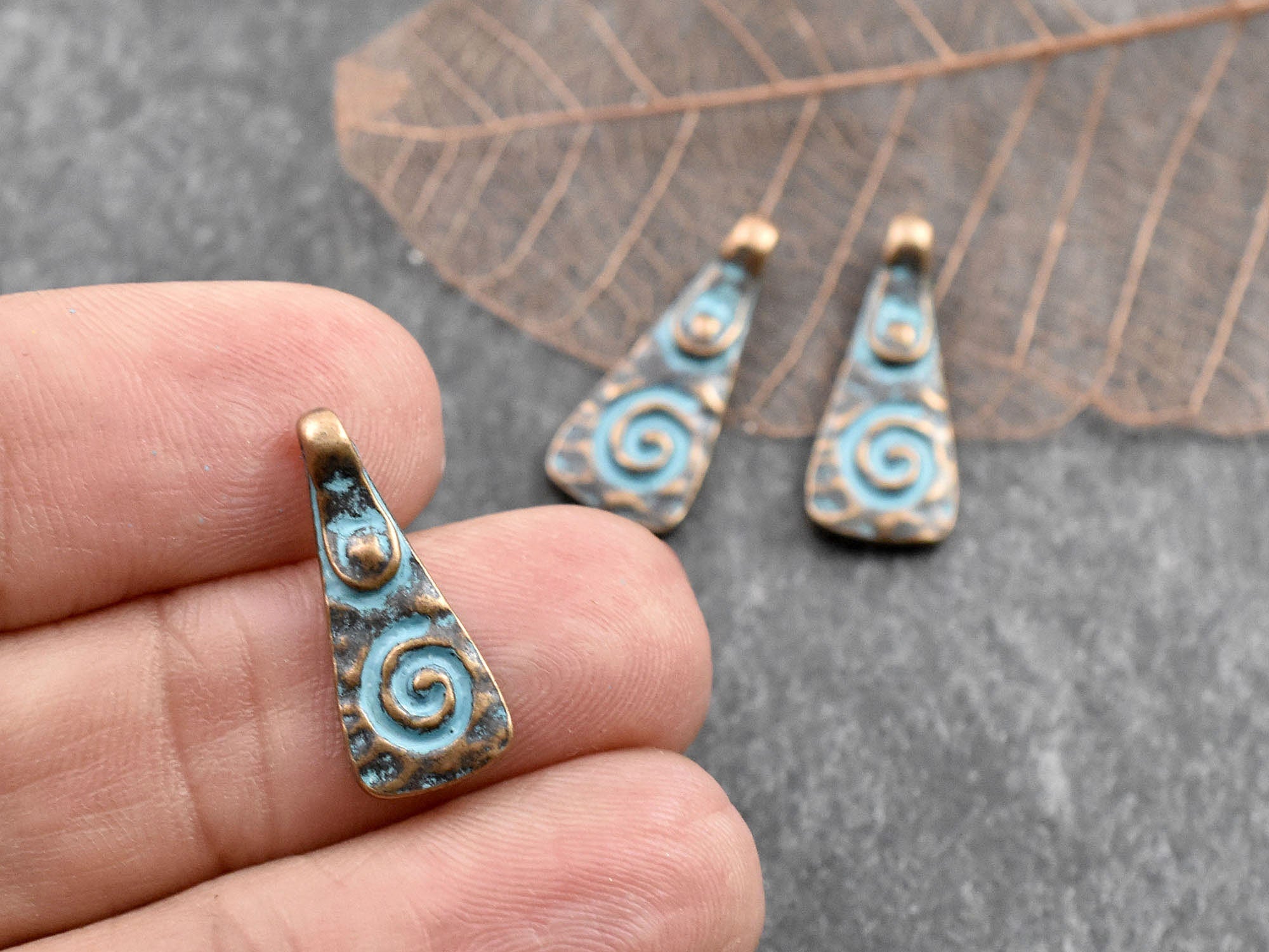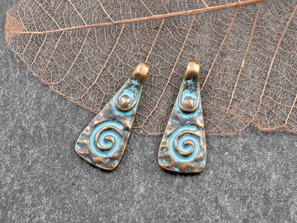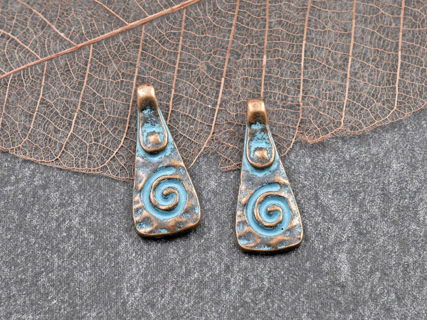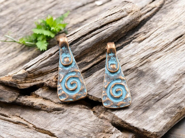*10* 20x8mm Copper Patina Mayan Spiral Drop Charms