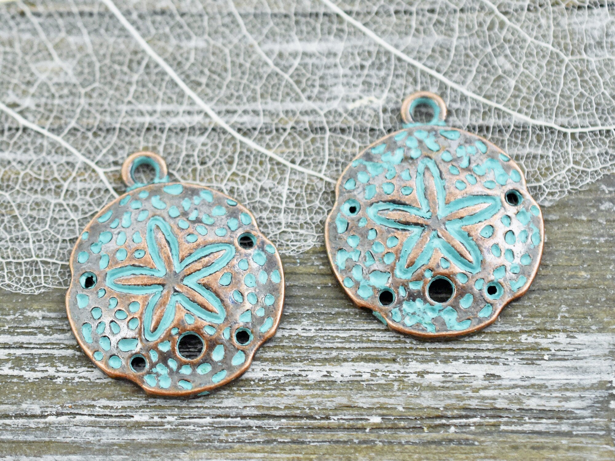 ♥ Type/Color/Shape: Copper Patina Sand Dollar Charms -- Lead & nickel safe