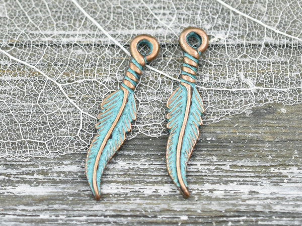 ♥ Type/Color/Shape: Copper Patina Feather Charms -- Lead & nickel safe