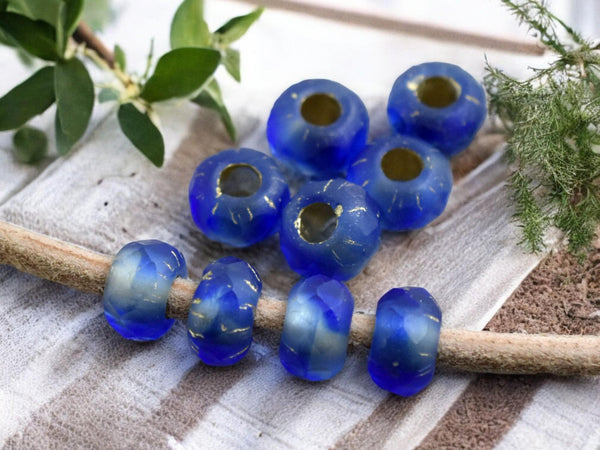 *25* 5x8mm Gold Lined Matte Sapphire Faceted Large Hole Rondelle Roller Beads