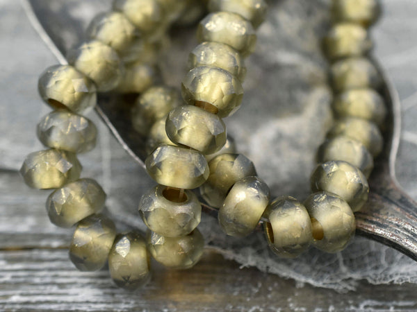 5x8mm Gold Lined Matte Smoky Quartz Faceted Large Hole Rondelle Roller Beads