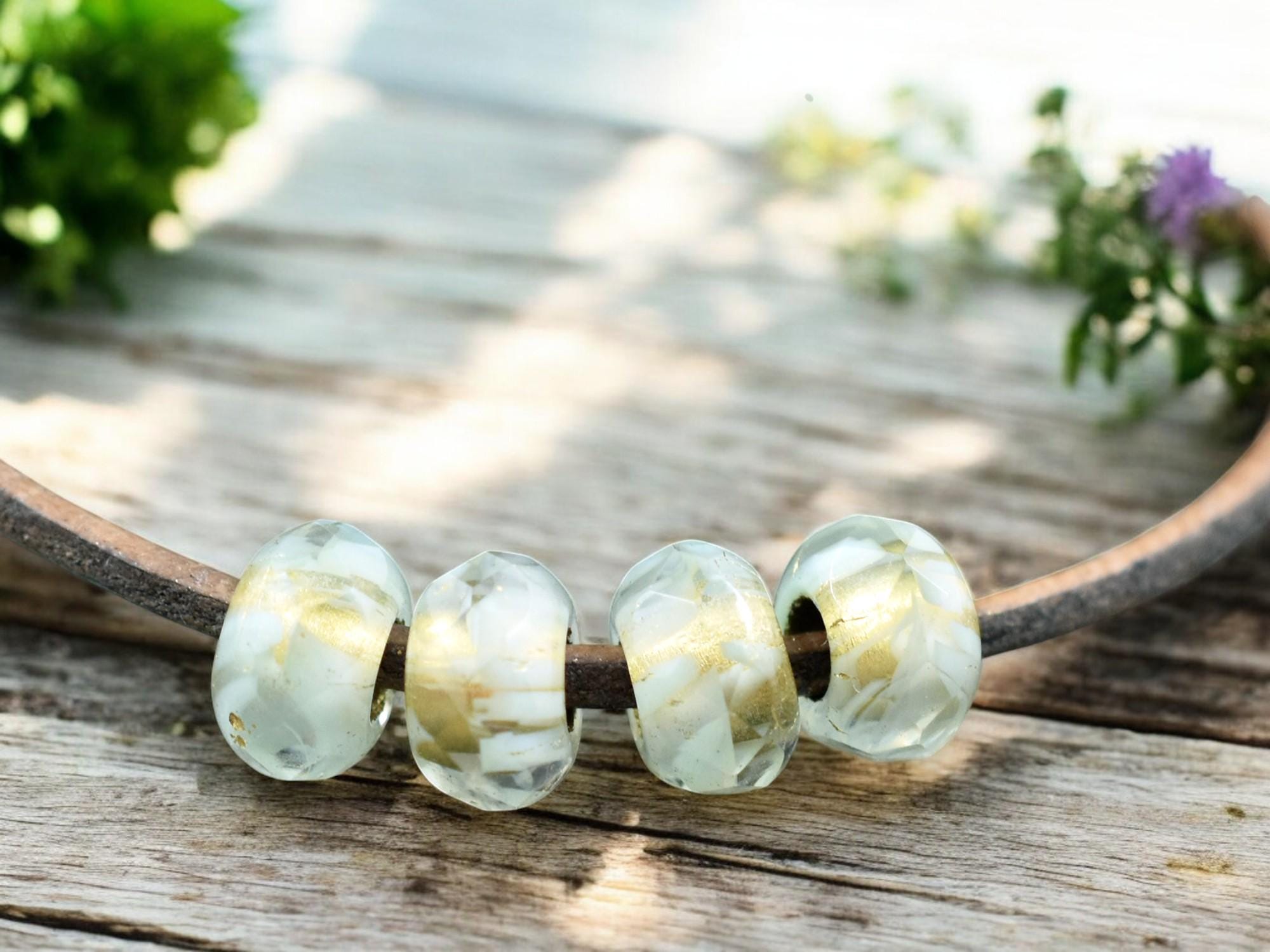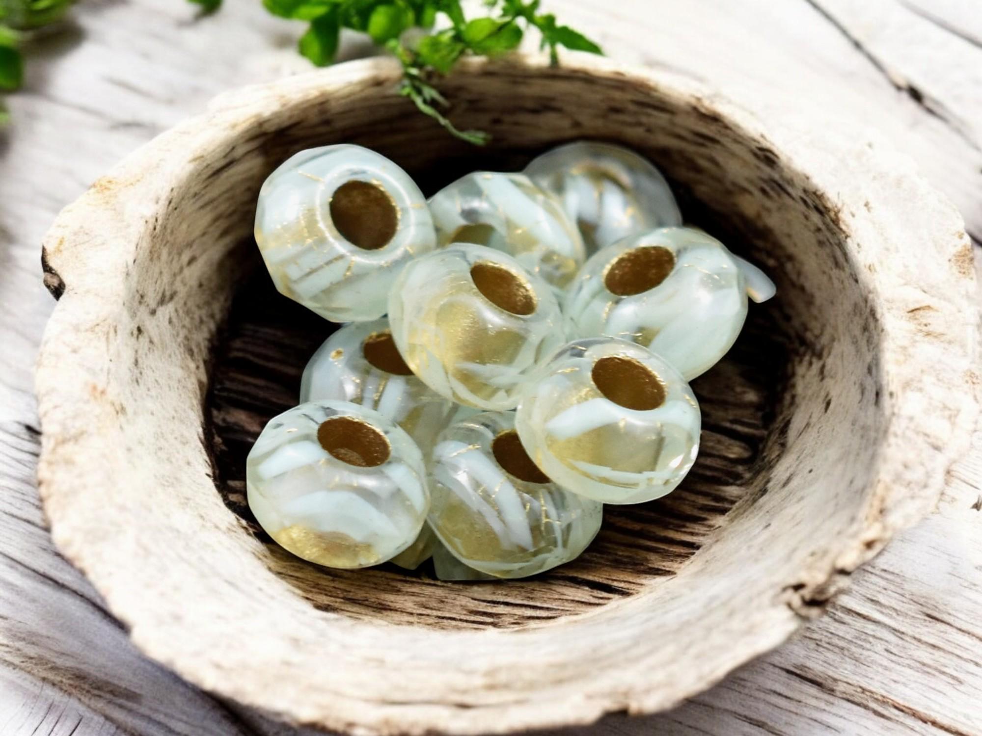 *25* 5x8mm Gold Lined Seafoam Crystal Faceted Large Hole Rondelle Roller Beads