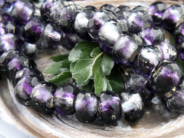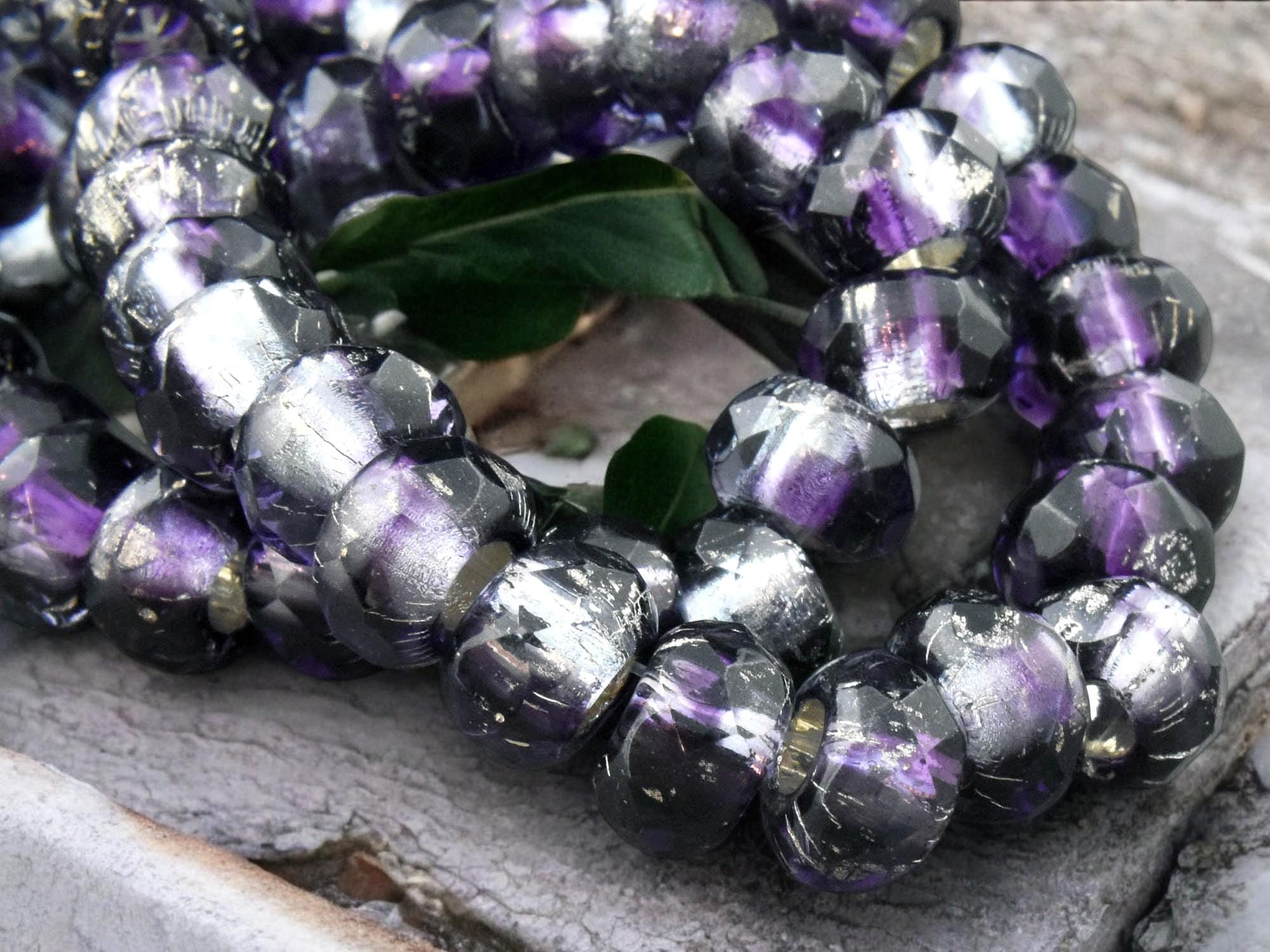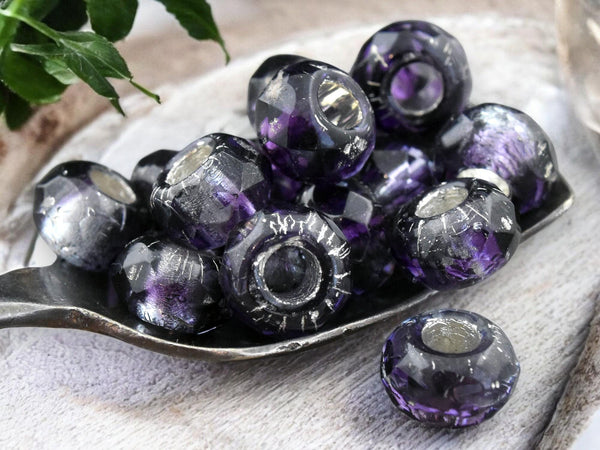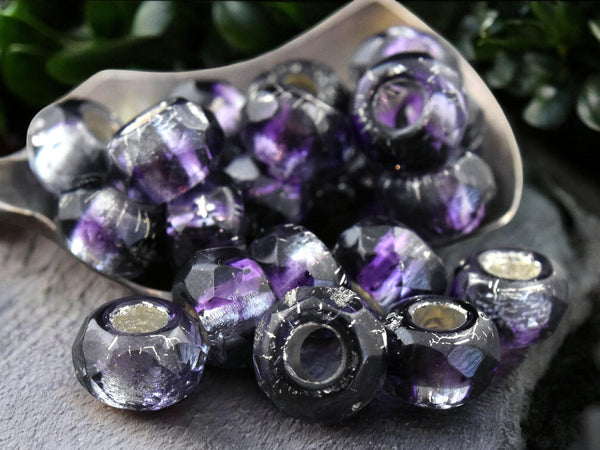 *25* 5x8mm Silver Lined Grape Purple Faceted Large Hole Rondelle Roller Beads
