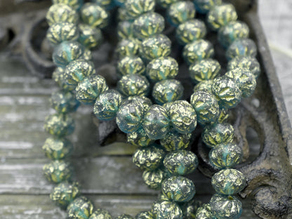 *12* 14mm Turquoise Washed Amber Picasso Wildflower Beads