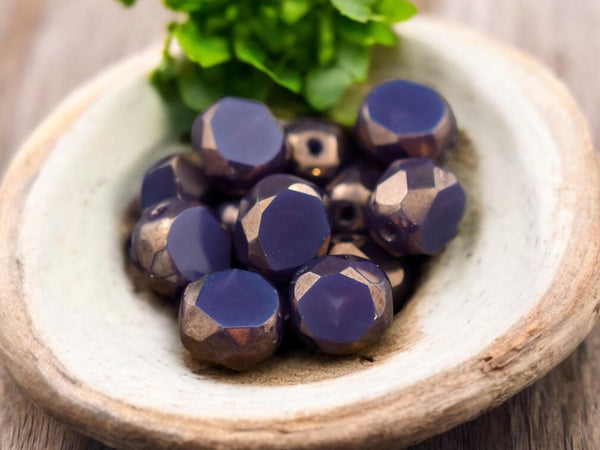 *15* 8mm Bronze Washed Plum Opal 2 Cut Fire Polished Faceted Round Beads