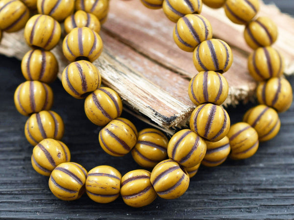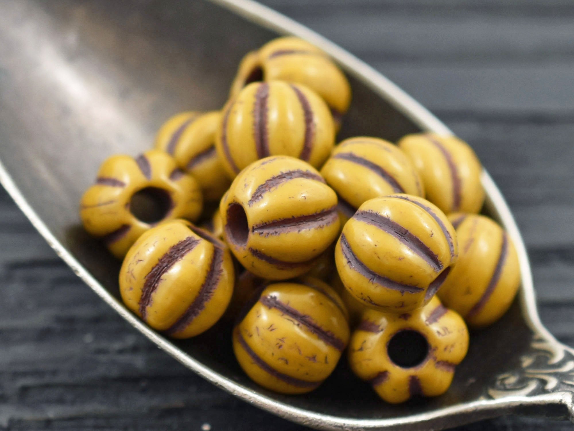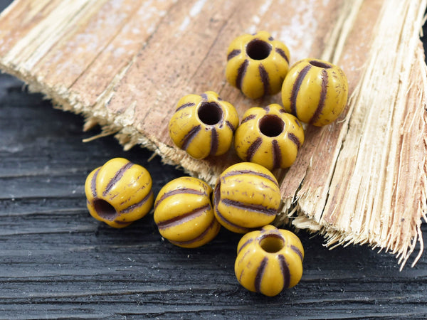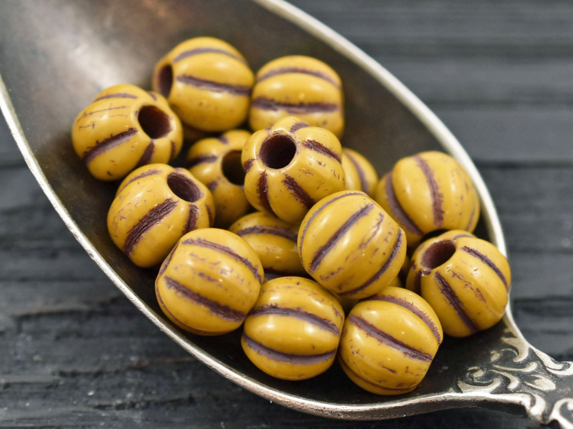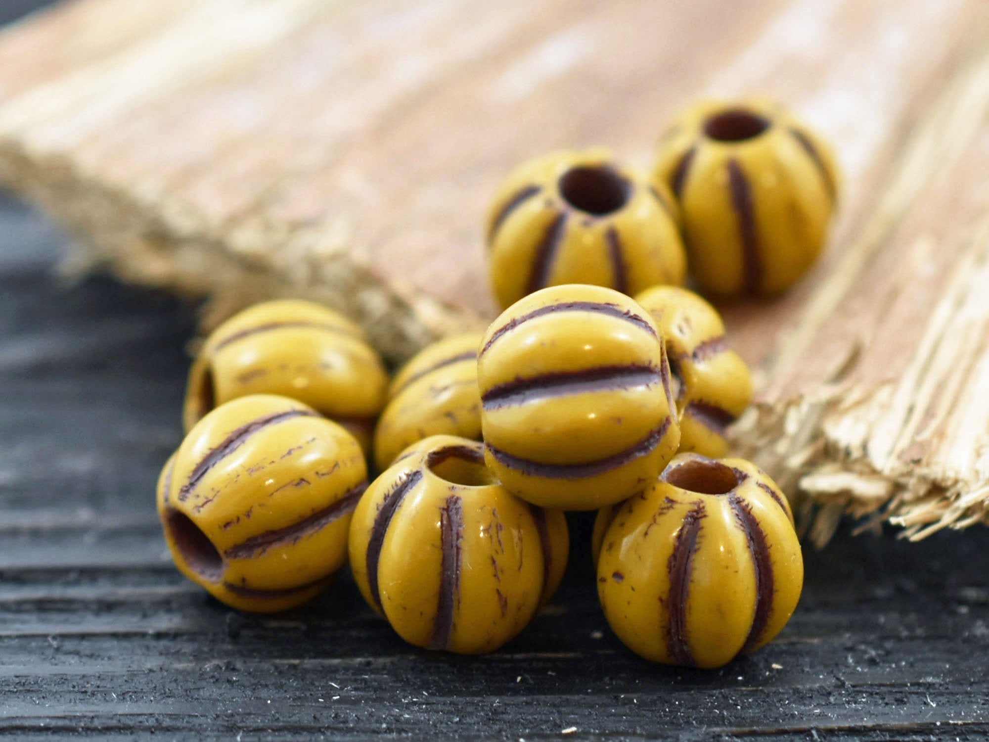 *20* 8mm Brown Washed Mustard Yellow Large Hole Melon Beads