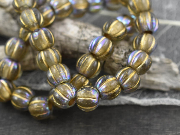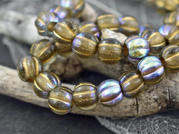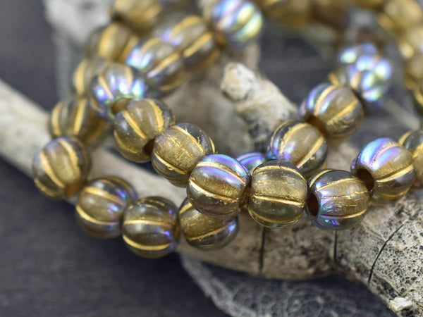 *20* 8mm Gold Washed Crystal Amber AB Large Hole Melon Beads