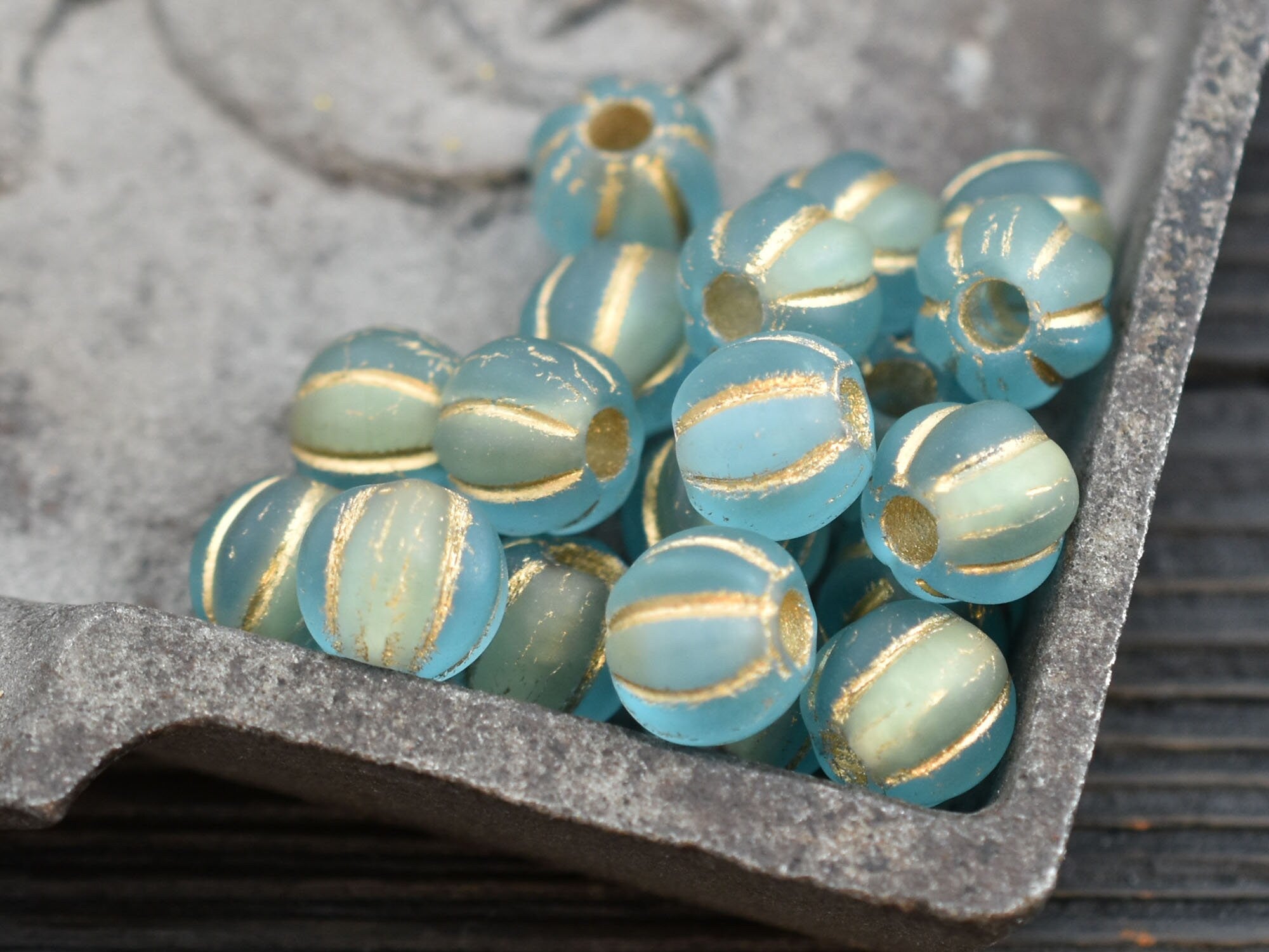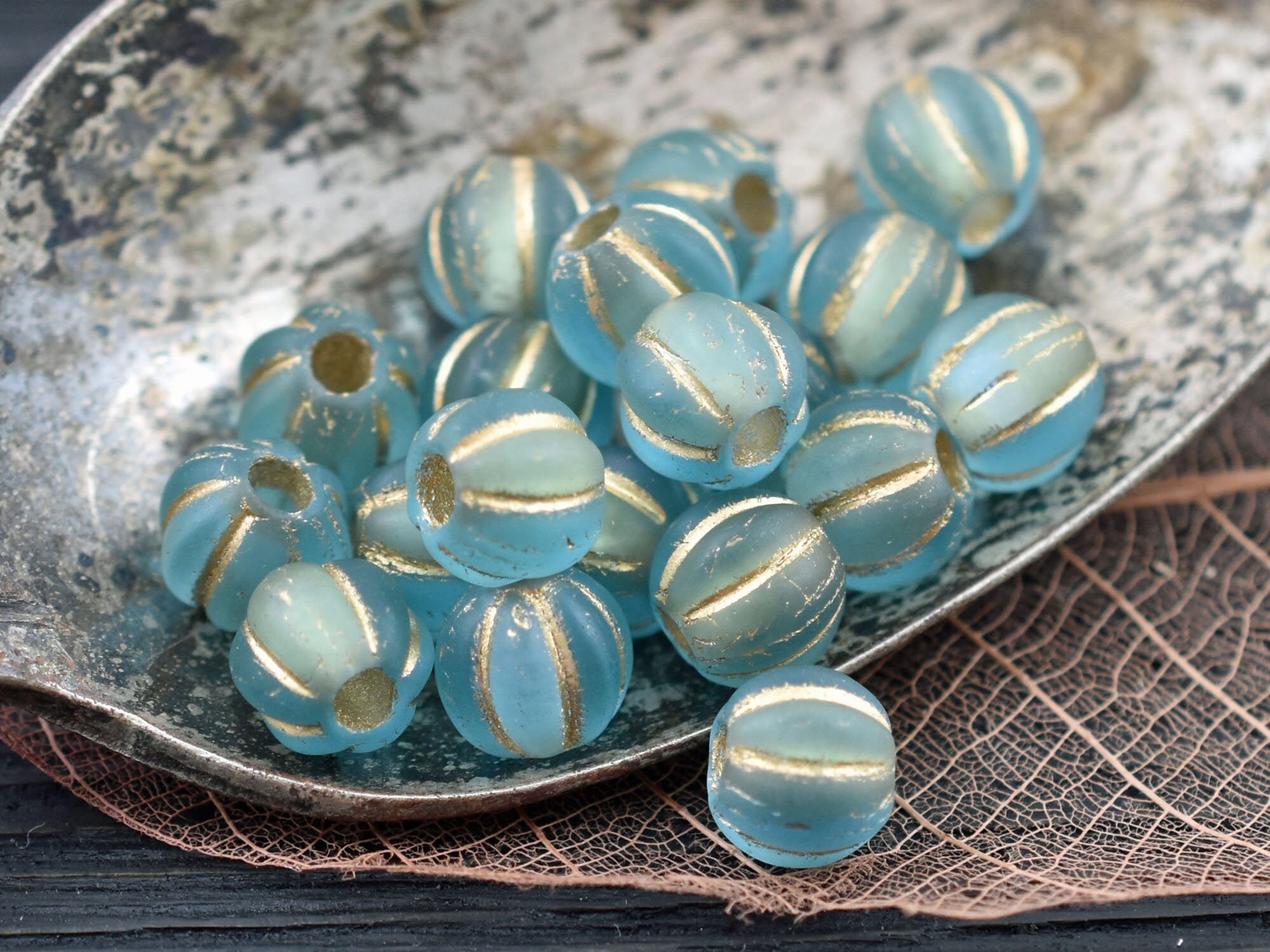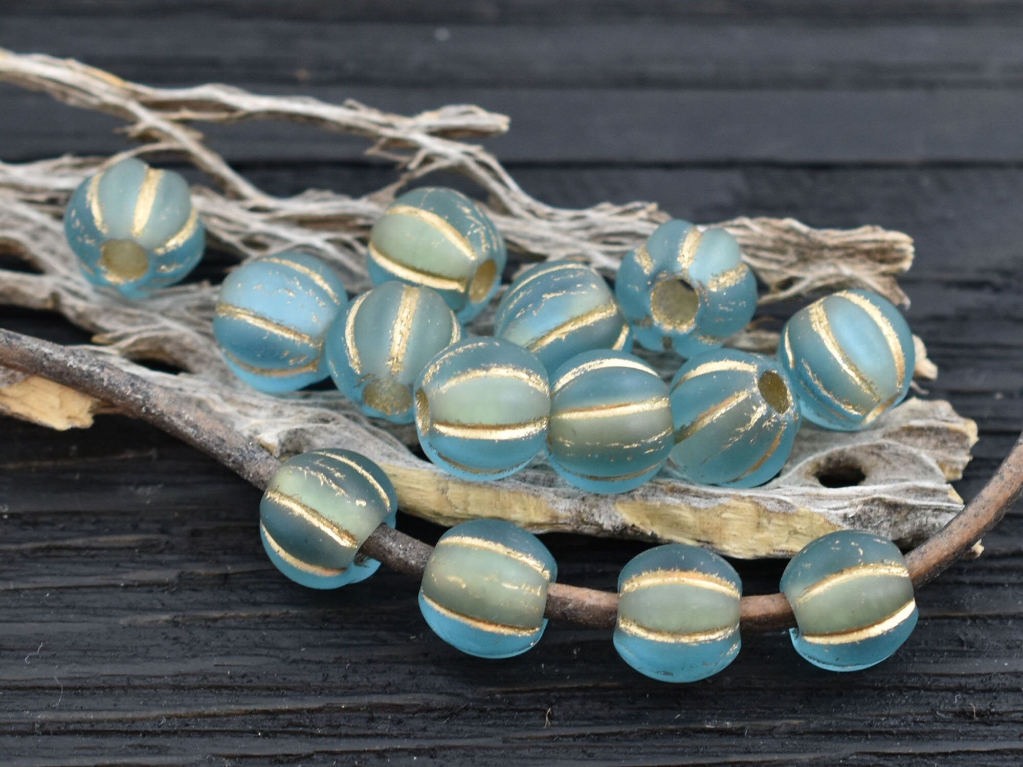 *20* 8mm Gold Washed Matte Blue Aqua Large Hole Melon Beads