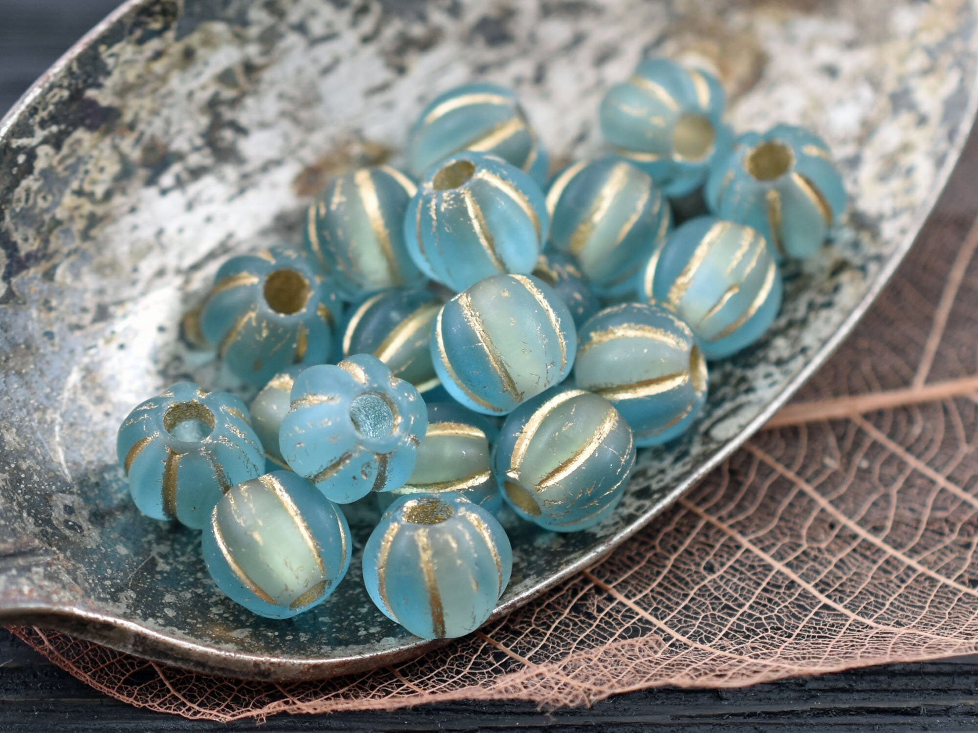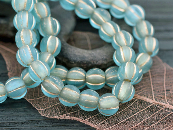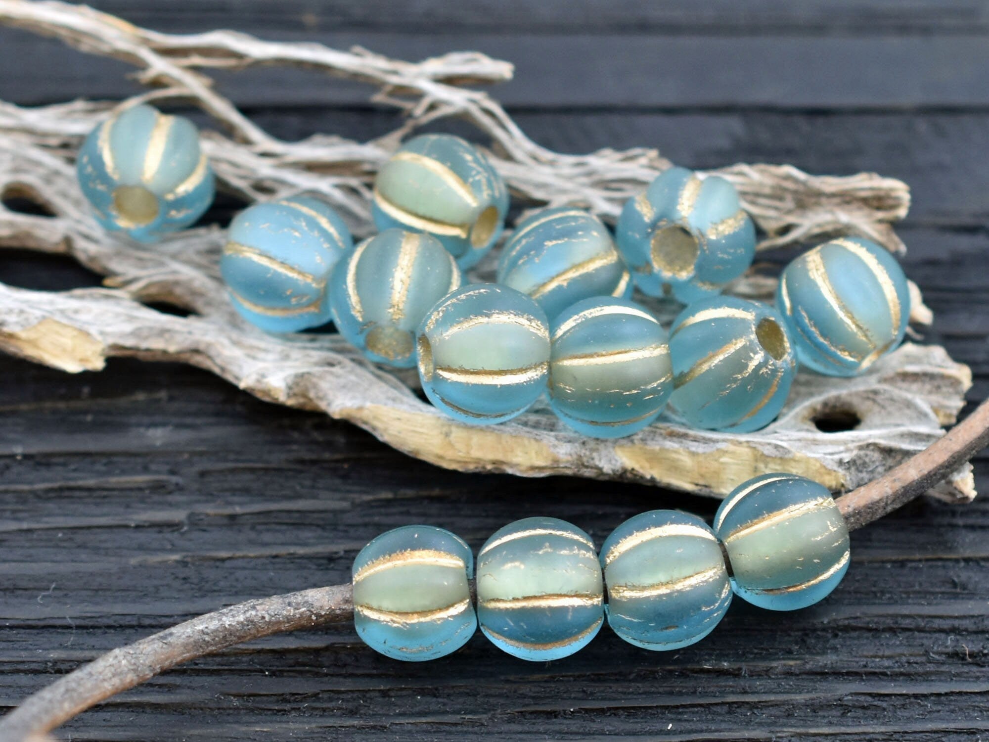 *20* 8mm Gold Washed Matte Blue Aqua Large Hole Melon Beads