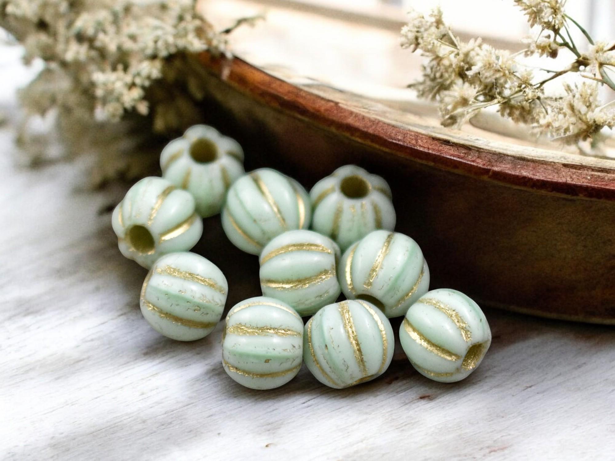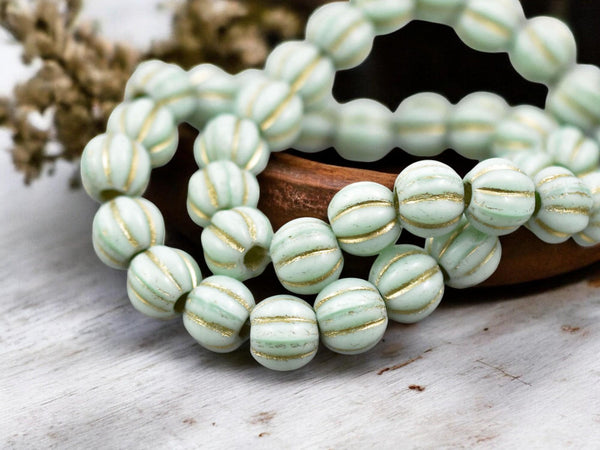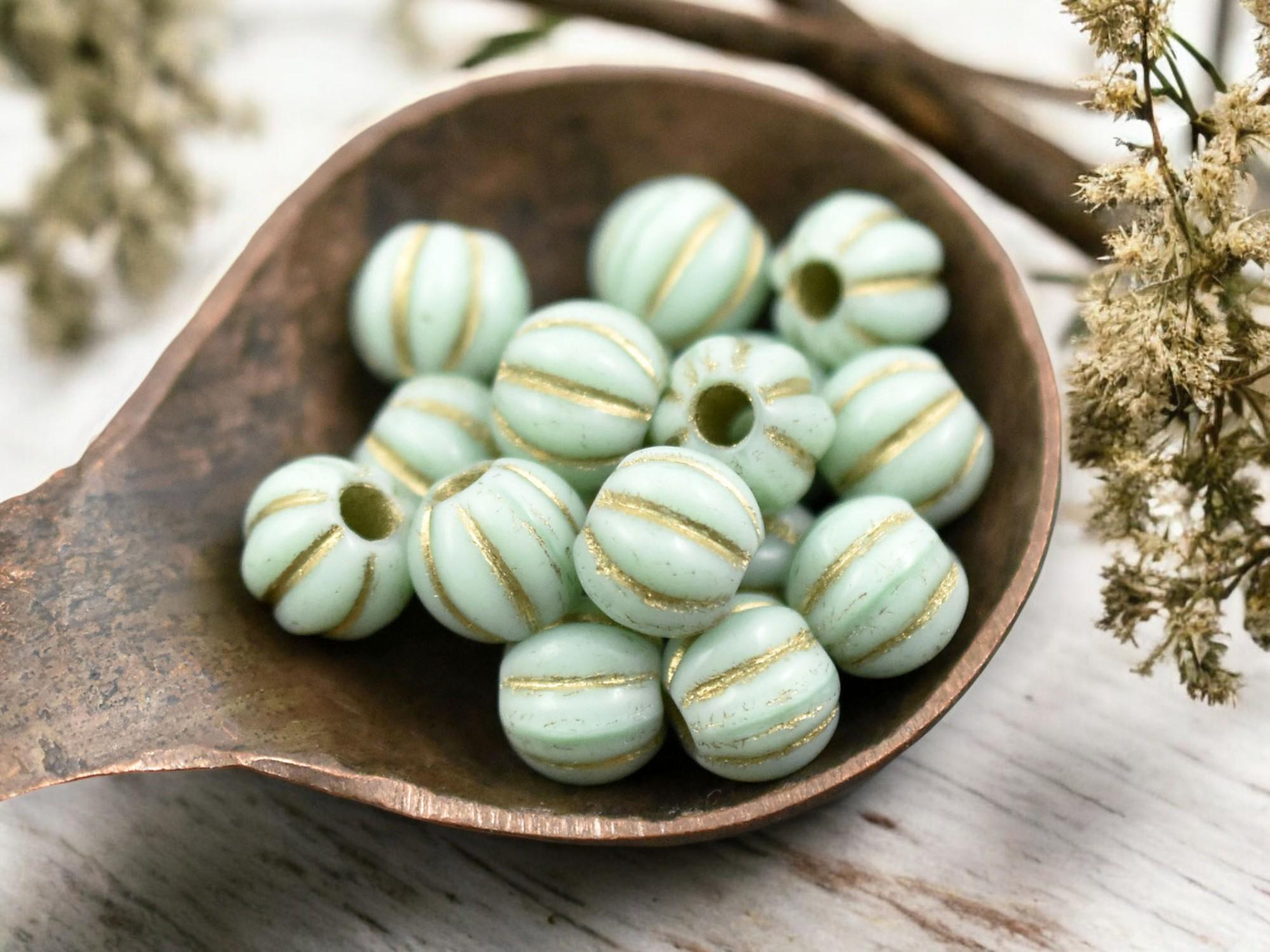 *20* 8mm Gold Washed Mint Green Large Hole Melon Beads