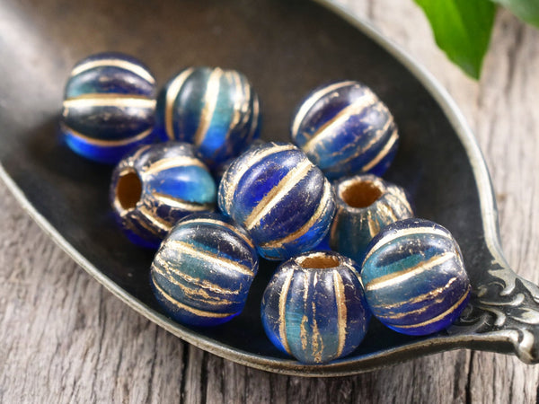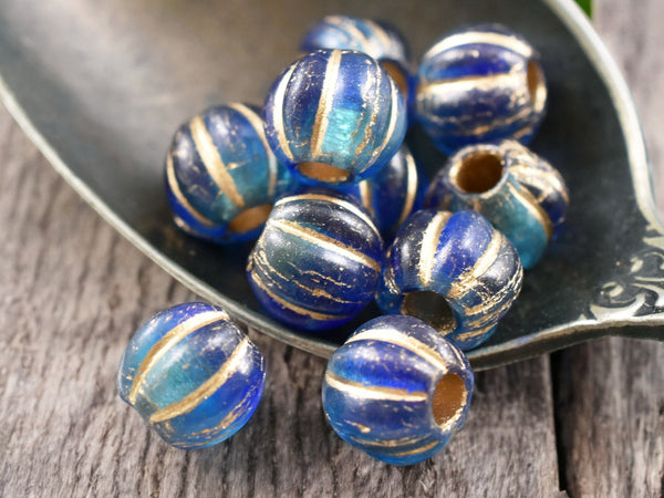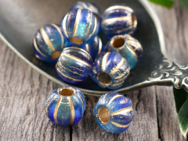 *20* 8mm Gold Washed Sapphire Sky Large Hole Melon Beads
