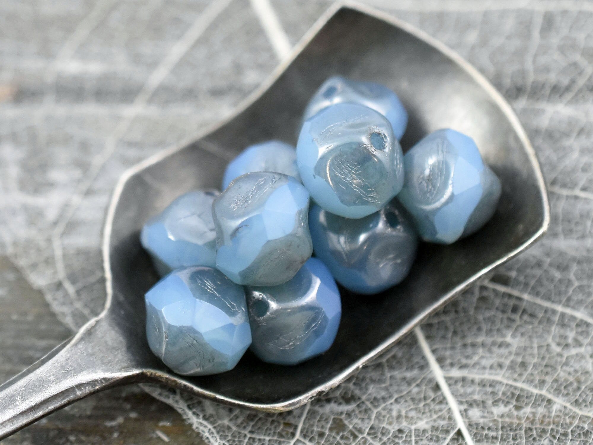 *10* 8mm Silver Washed Blue Opaline Central Cut Round Beads