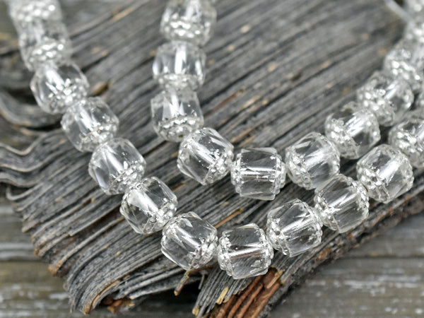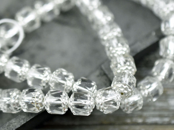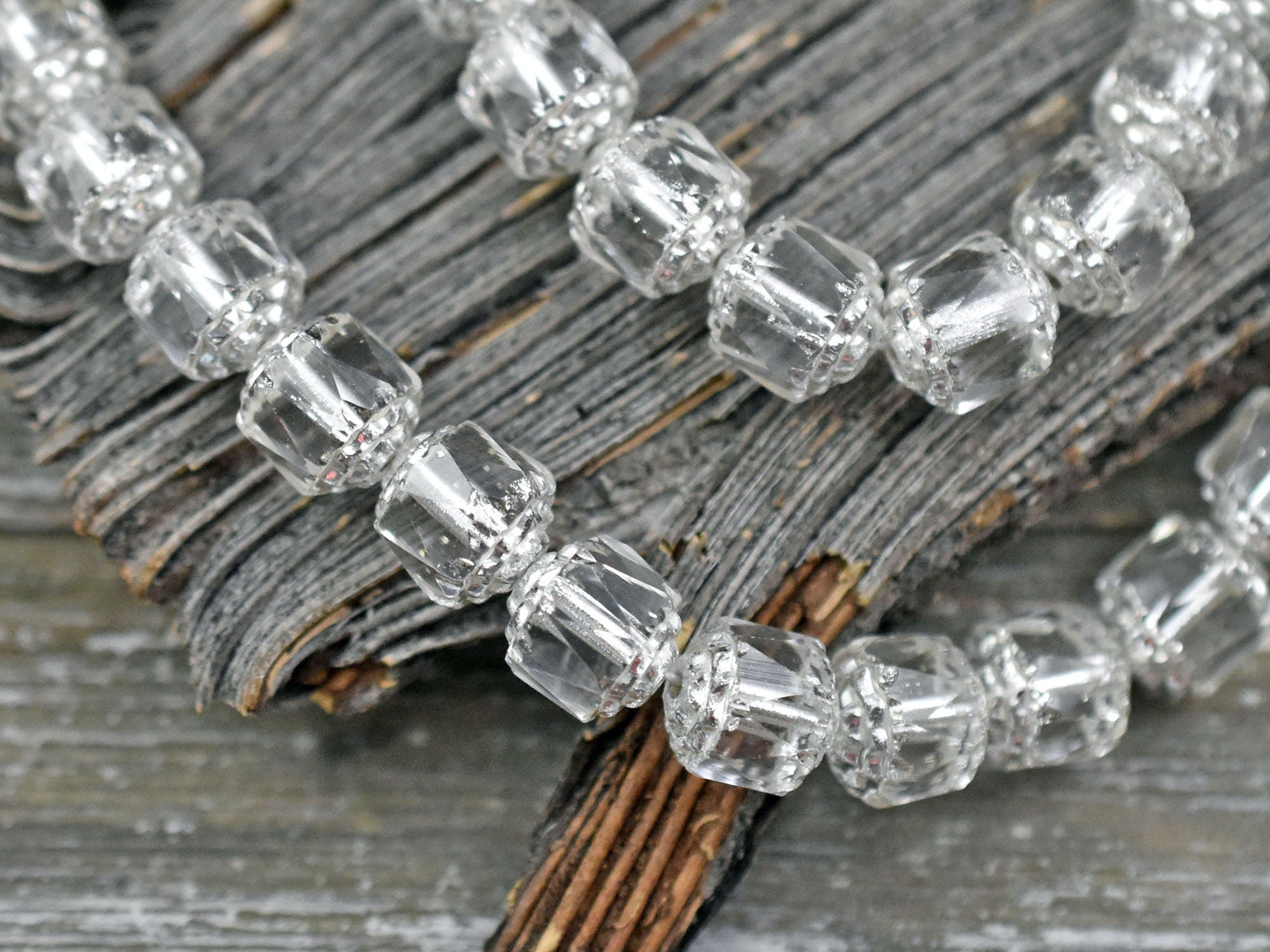 *20* 8mm Silver Washed Clear Fire Polished Cathedral Beads