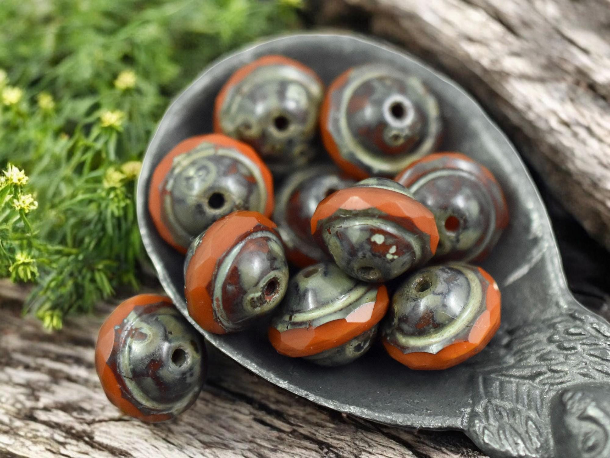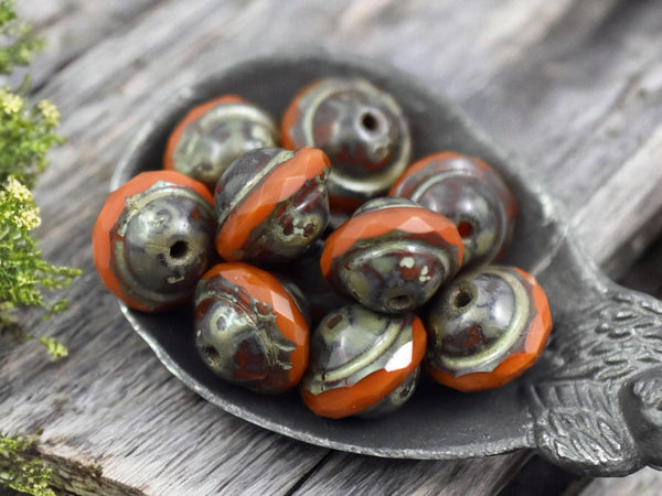 *10* 8x10mm Orange Opaline Picasso Saturn Beads