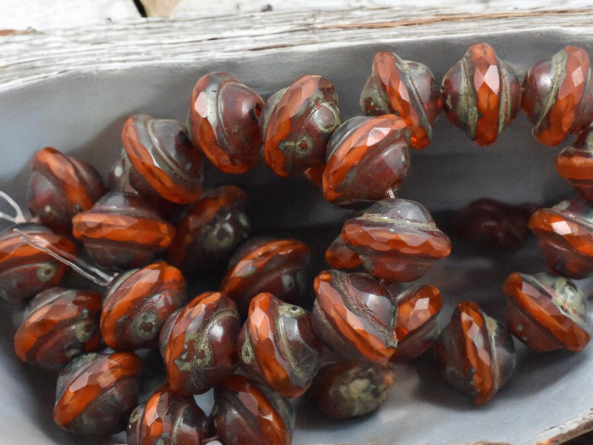 *10* 8x10mm Orange Opaline Picasso Saturn Beads